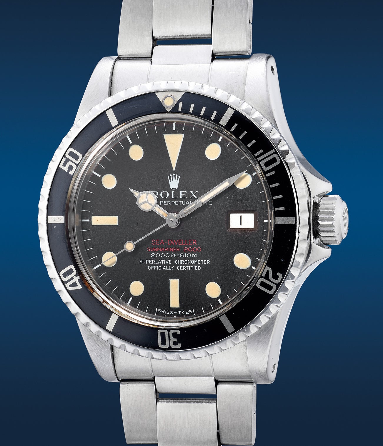 勞力士,「Sea-Dweller」型號1665,精細罕有,精鋼自動鏈帶腕錶,備「Double Red MK II」錶盤、日期、中心秒針、排氦裝置,約1972年製。附錶盒、原裝證書、配件