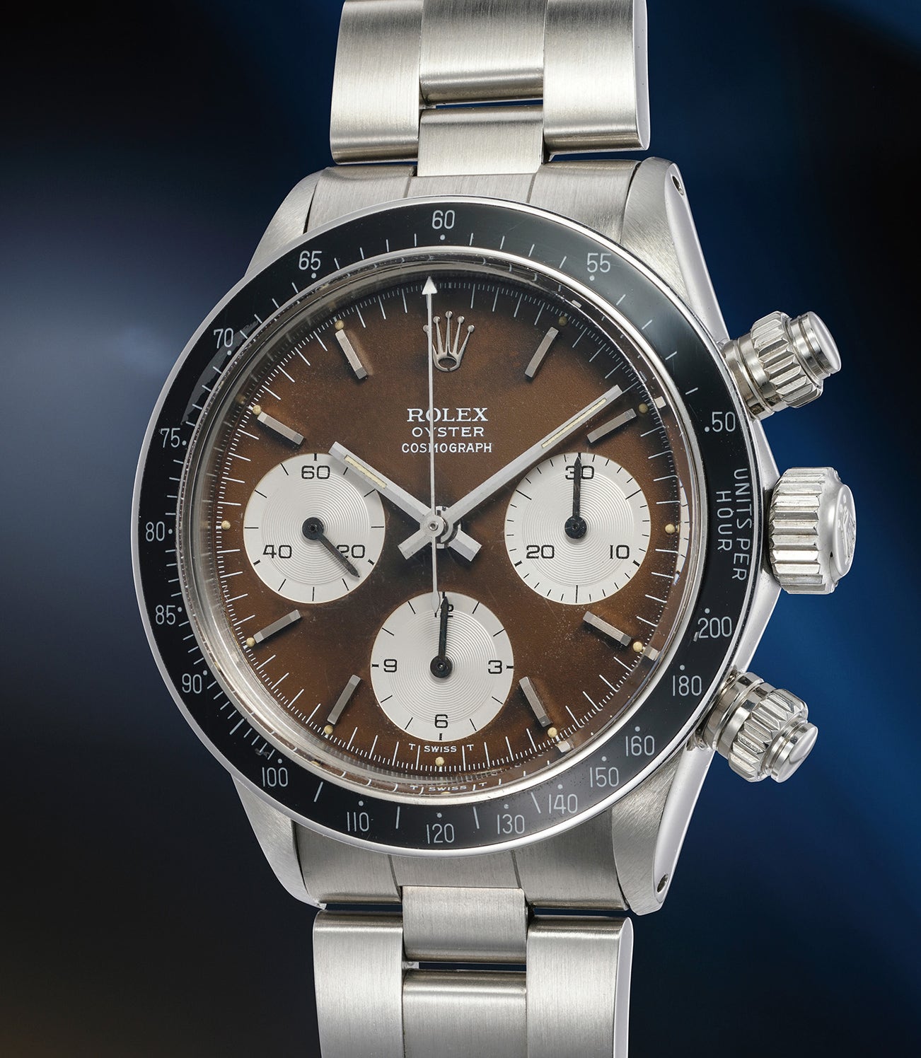 勞力士,早期及十分精美,精鋼計時鏈帶腕錶,備栗色「tropical」錶盤。