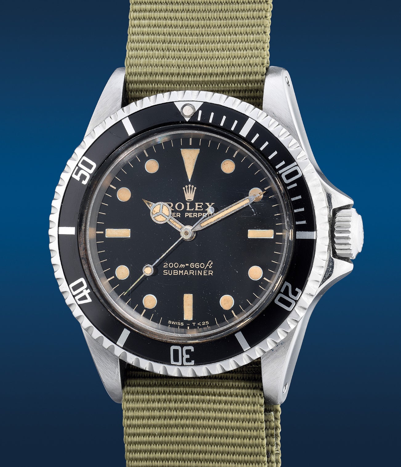 勞力士,「Submariner」型號5513,精細罕有,精鋼自動鏈帶腕錶,備黑色亮漆面「 Meters first」錶盤、中心秒針,約1966年製