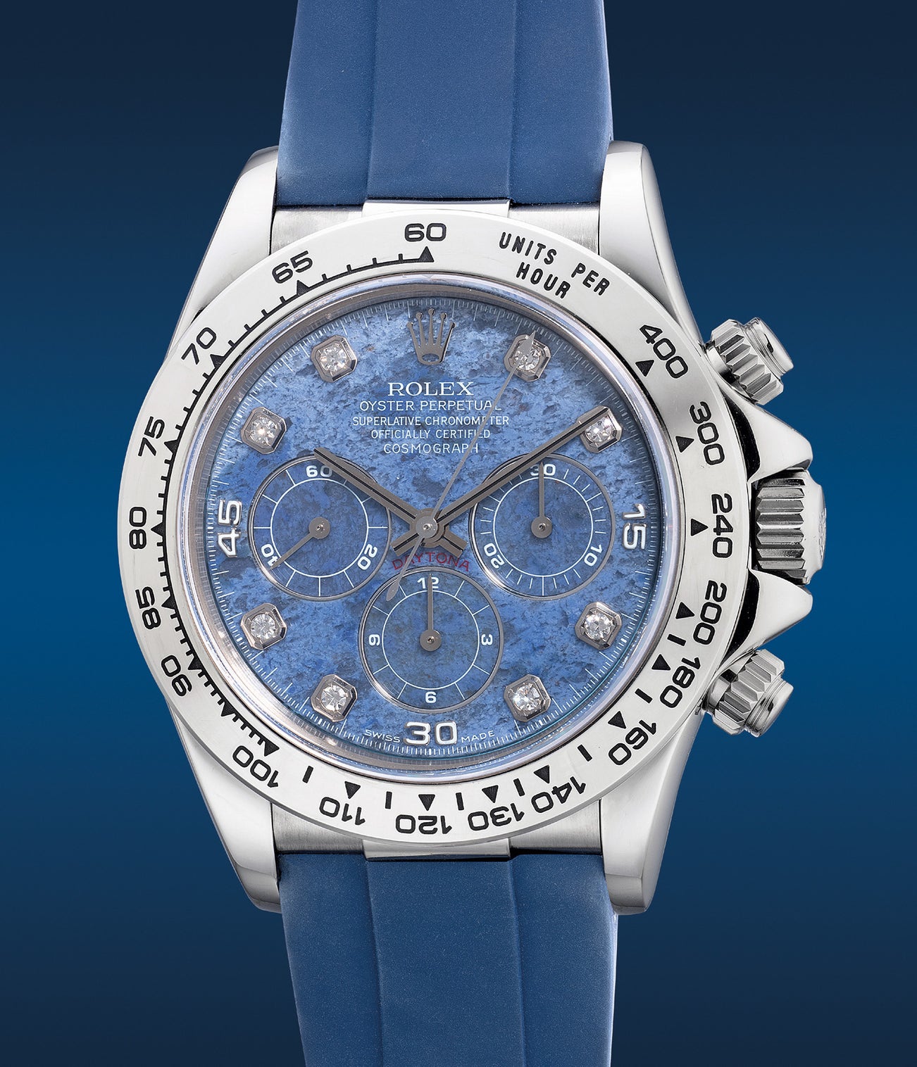 勞力士, 「 Cosmograph Daytona 」 型號16519,精細罕有,白金自動計時腕錶,備天然藍色方納石錶盤、鑽石時標,約1997年製
