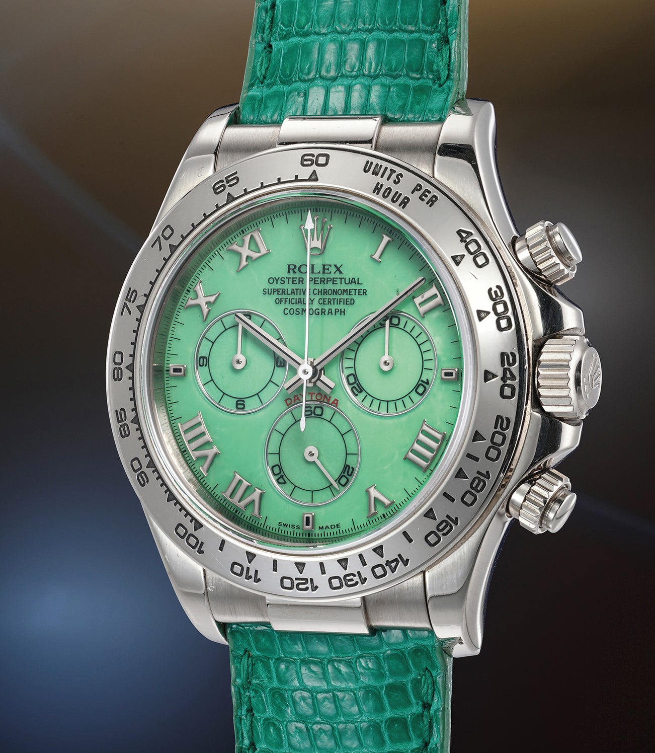 勞力士,罕有精美,白金計時腕錶,備綠玉髓錶盤。