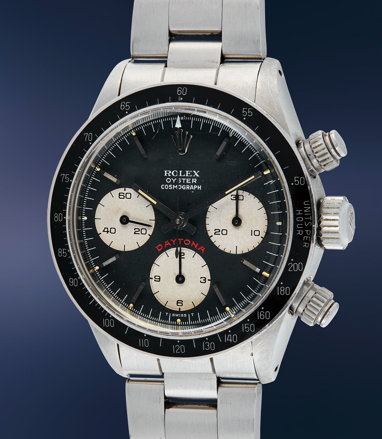 Consigned by the original owner, it is in overall well-preserved, original condition. The allure of the watch is enhanced with the correct black acrylic bezel, original pushers and Oyster bracelet, and comes complete with original dated guarantee, sales invoice, service papers, and presentation box. Today, the Rolex Daytona is an important wristwatch for collectors, and this vintage chronograph is an excellent example with great pedigree and is sure to please savvy connoisseurs.