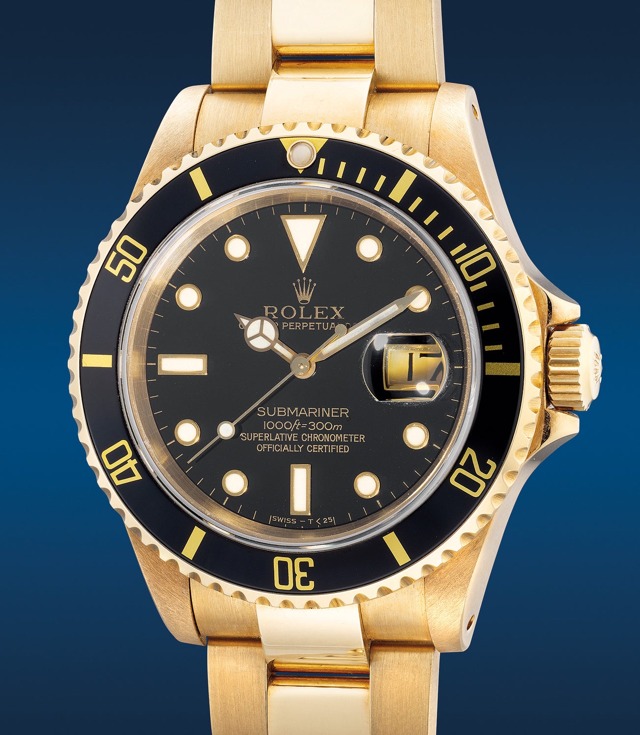 勞力士,「Submariner “Onyx Sub”」型號16618,獨特罕有,黃金自動鏈帶腕錶 ,備天然瑪瑙錶盤、中心秒針、日期顯示,约1992年製。附原裝證書、錶盒、配件