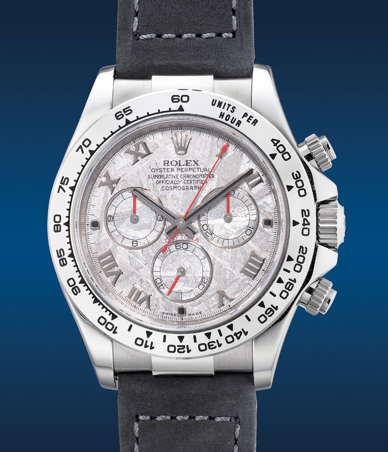 As the supply of meteorites is diminishing over time, collectors have increased their appetite for wristwatches featuring exotic dials as seen on the present present Daytona ref. 116519. Offered in excellent overall condition with its original guarantee and presentation box, this is the perfect opportunity to acquire a fine celestial specimen, encased in white gold.