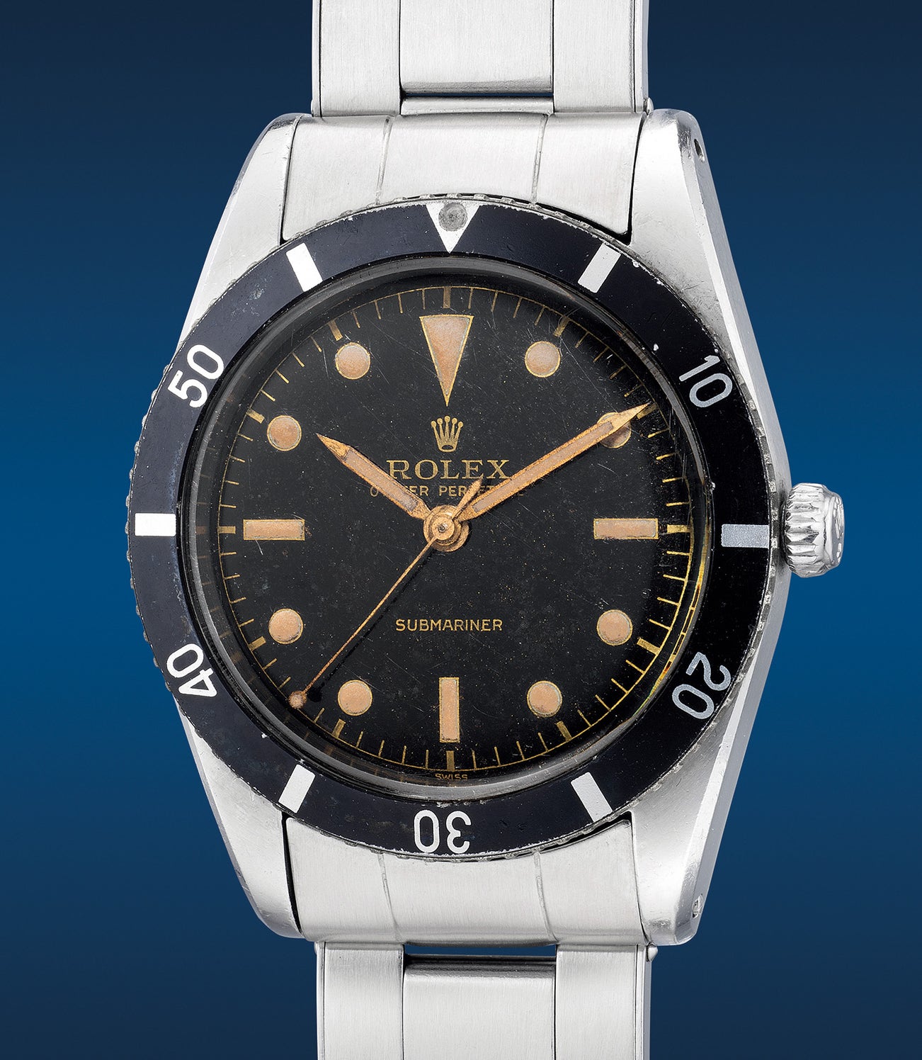 勞力士,「Submariner」型號6204,非常精細,精鋼自動鏈帶腕錶,備金字亮面錶盤,約1954年製