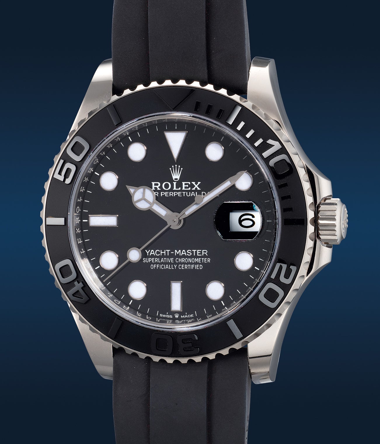 勞力士,「Yacht-Master 42」型號226659,精細,白金自動腕錶,備黑陶瓷錶圈、中心秒針、日期顯示,約2020年製。附錶盒、原裝證書、配件