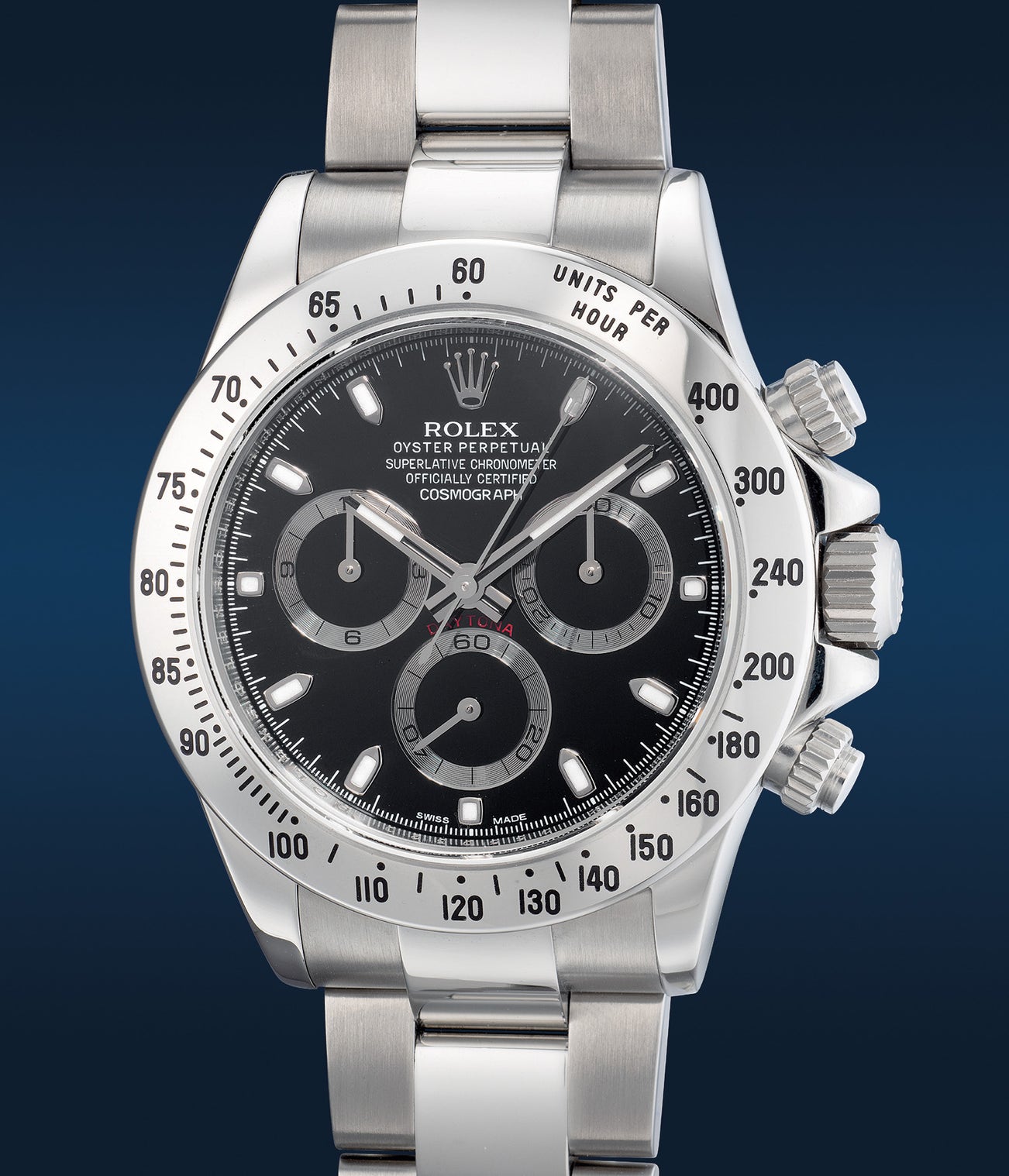 勞力士,「Cosmograph Daytona」型號116520,精細,精鋼自動計時鏈帶腕錶,約2012年製。附原裝證書、錶盒、配件