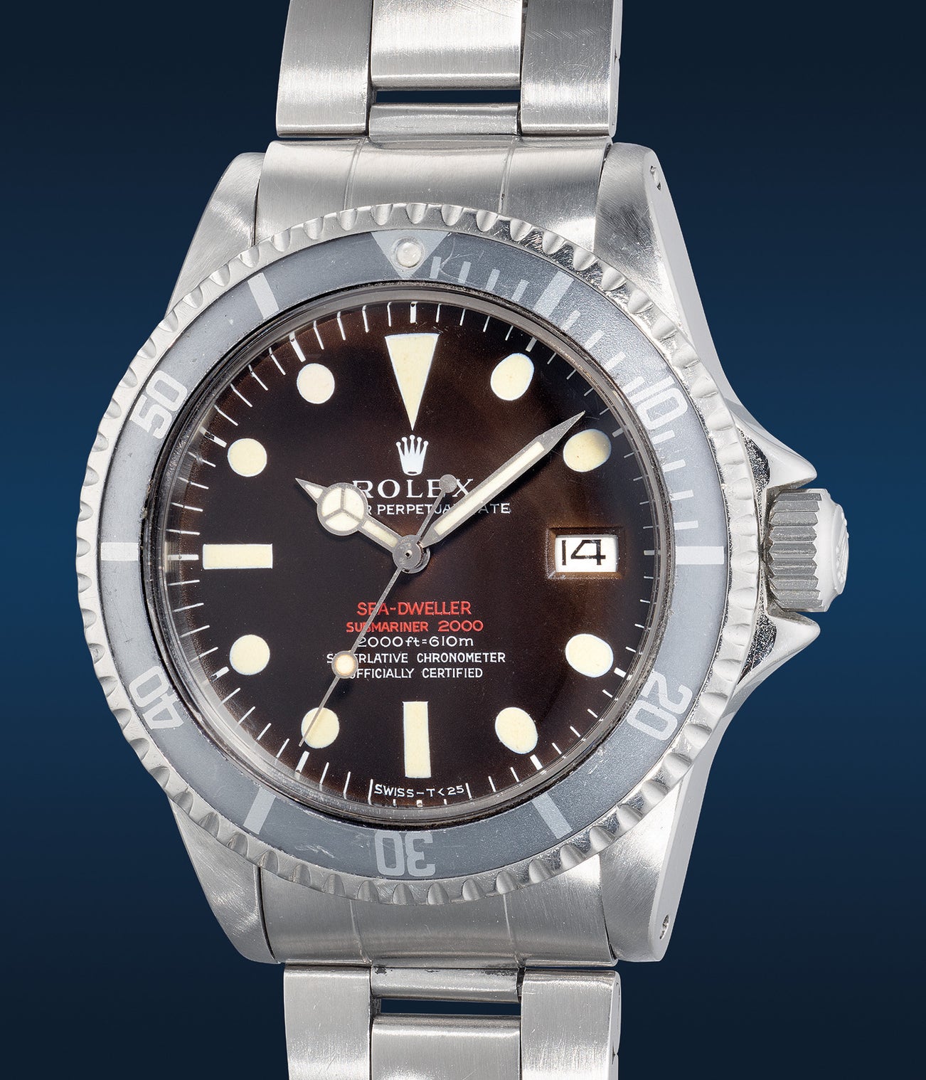 勞力士,「Sea-Dweller」型號1665,精細罕有,精鋼自動鏈帶腕錶,備「Double Red MK II」棕色錶盤、日期、中心秒針、排氦裝置,約1968年製