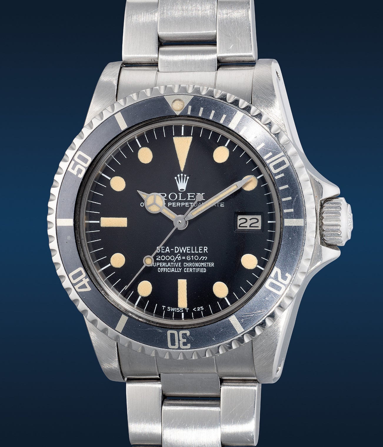 勞力士,「Sea-Dweller」型號1665,精鋼自動鏈帶腕錶,備「Rail dial」錶盤、日期、中心秒針、排氦裝置,約1978年製
