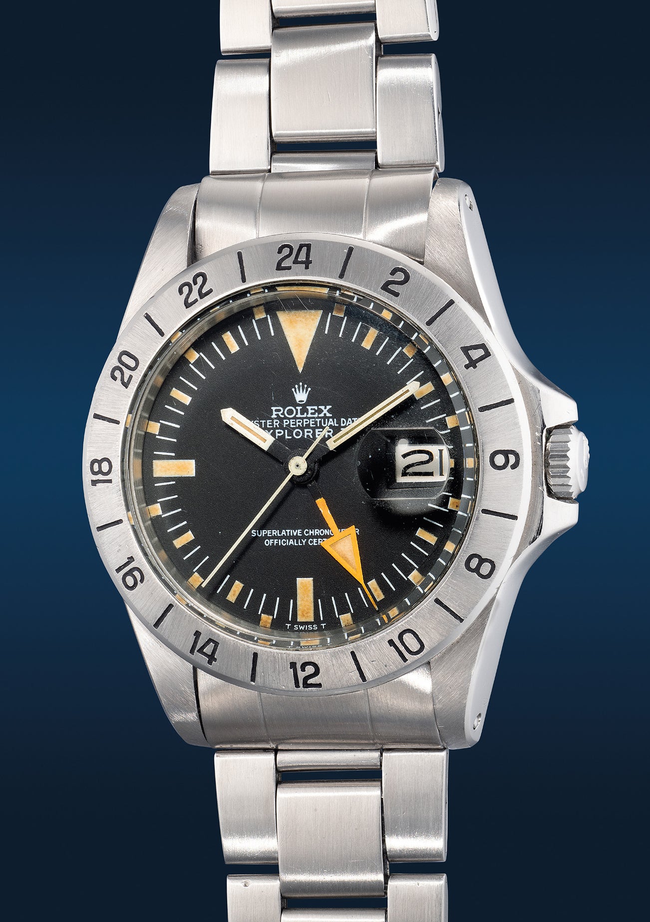 勞力士,「Explorer II "Freccione"」型號1655,罕有、精細,精鋼自動兩地時區鏈帶腕錶,備「MK I dial」錶盤、中心秒針、日期、24 小時顯示,約1973年製