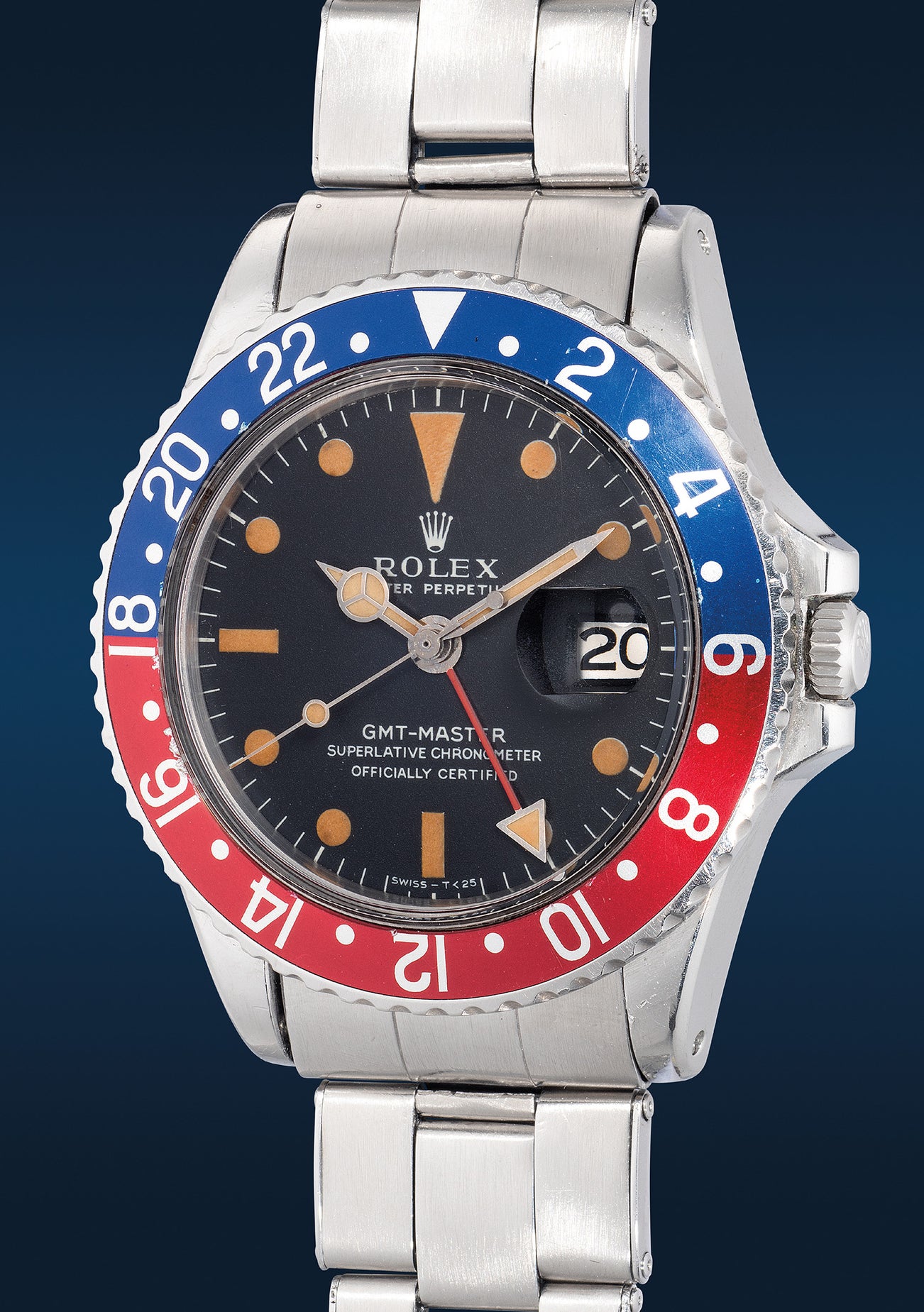 勞力士,「 GMT-Master, MK I 」型號1675,精細,精鋼自動兩地時區鏈帶腕錶,備「MK I」錶盤、中心秒針、日期顯示,約1968年製。附原裝證書、錶盒、鏈帶