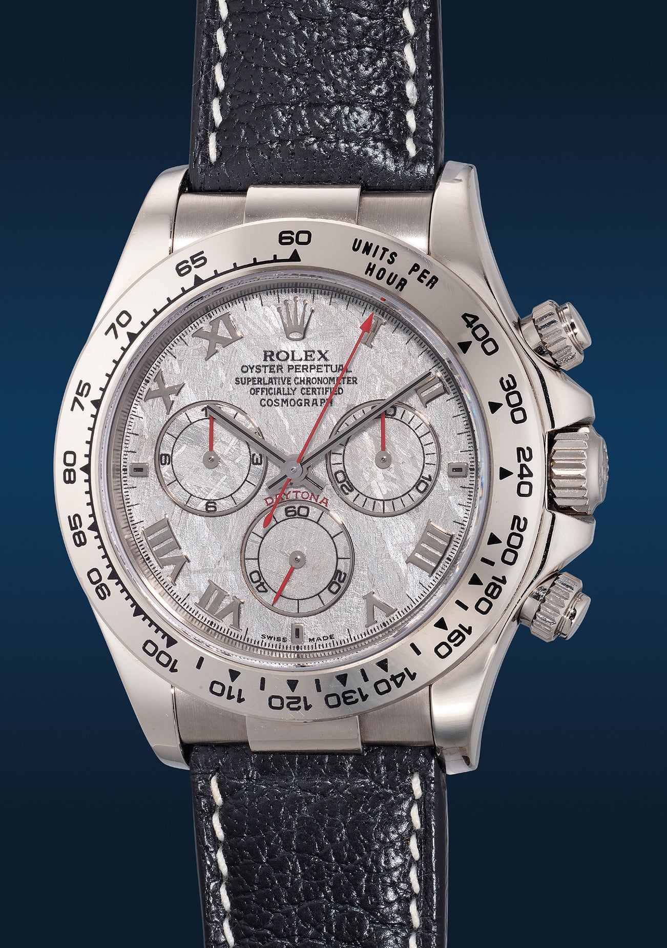 勞力士,「Cosmograph Daytona」型號116519,白金自動計時腕錶,備天然隕石錶盤,約2004年製。附原裝證書