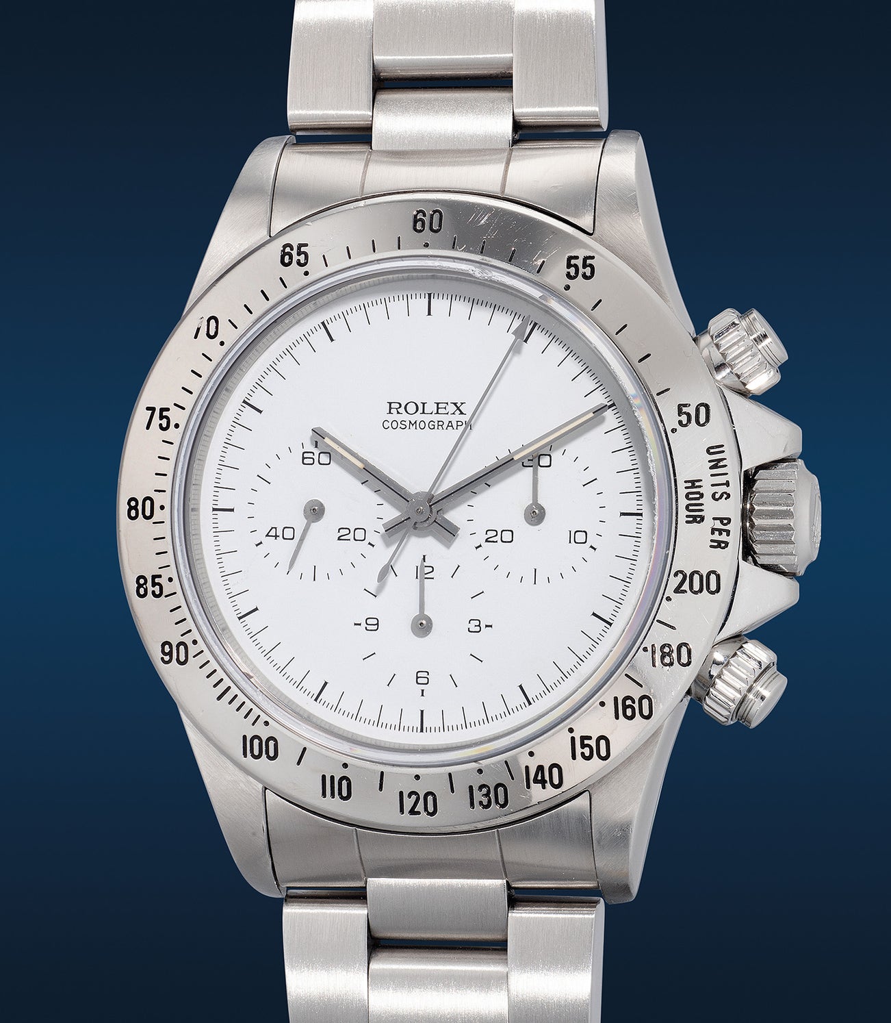 Widely recognized as “Mr. Daytona”, Mr. Pucci Papaleo, the Italian scholar, collector-turned-author began his study of watches before this topic was broadly considered an area of study. Prior to his focused expertise on Daytona, he was interested in early Rolex and Patek Philippe chronographs, by the end of the 1980s, his attention and appetite grew stronger and stronger on chronographs of the Swiss manufacturer, Rolex, and particularly, the Daytona. Regarded as one of, if not “the”, most influential man in the world of vintage Daytona, his intricate study and scholarship are orchestrated in multiple opuses such as “The Ultimate Rolex Daytona” and the “Daytona Perpetual” that is delivered with the present lot, because the dial of the present watch belongs to the group of COSC dials that Mr. Pucci Papaleo photographed in 2018 for the publication of the “Daytona Perpetual” book, which features similar details of the example that is illustrated in the book on page 119.
