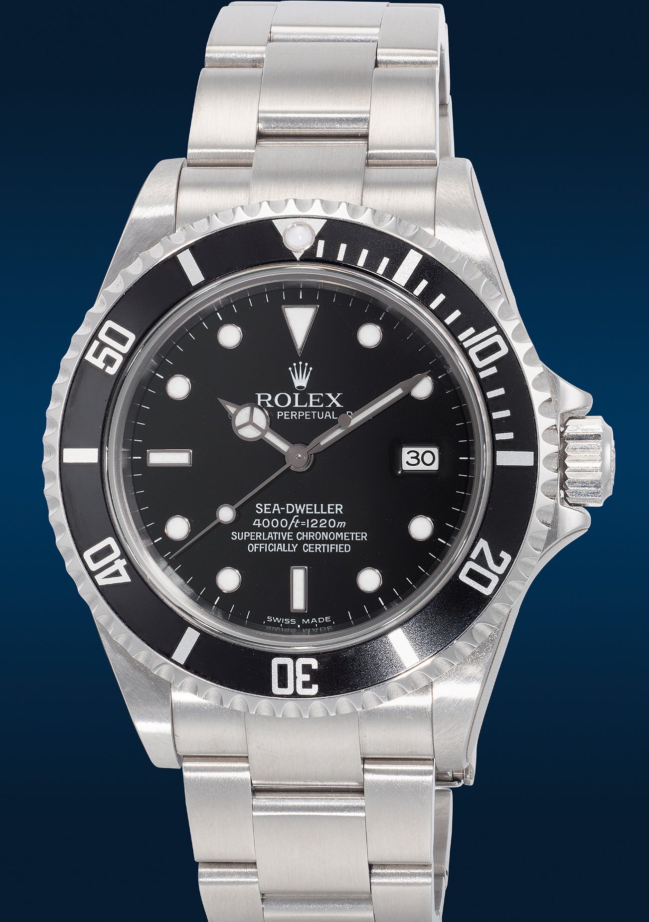 勞力士,「Sea-Dweller」型號16600 ,精鋼自動鏈帶腕錶,備中心秒針、日期顯示﹑排氦裝置,約2005年製。附原裝證書、錶盒