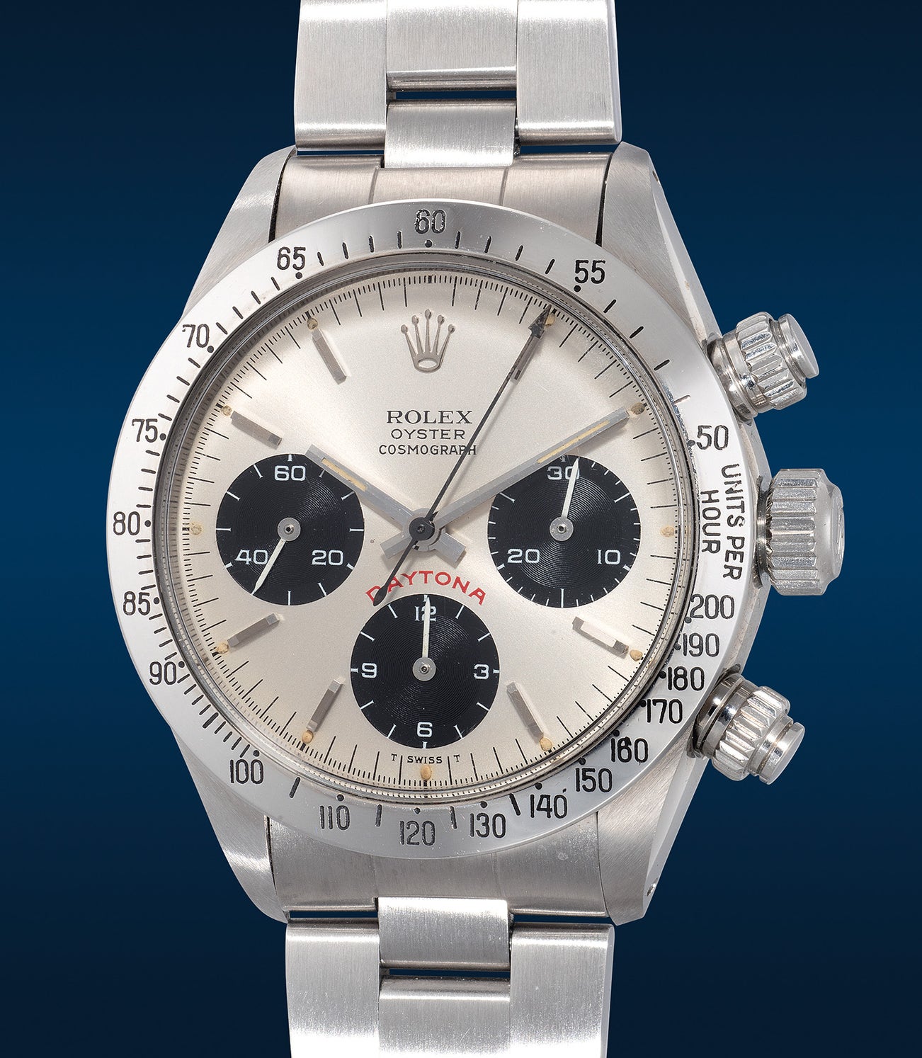 勞力士,「Cosmograph Daytona, Big Red」型號6265,精鋼計時鏈帶腕錶,約1979年製