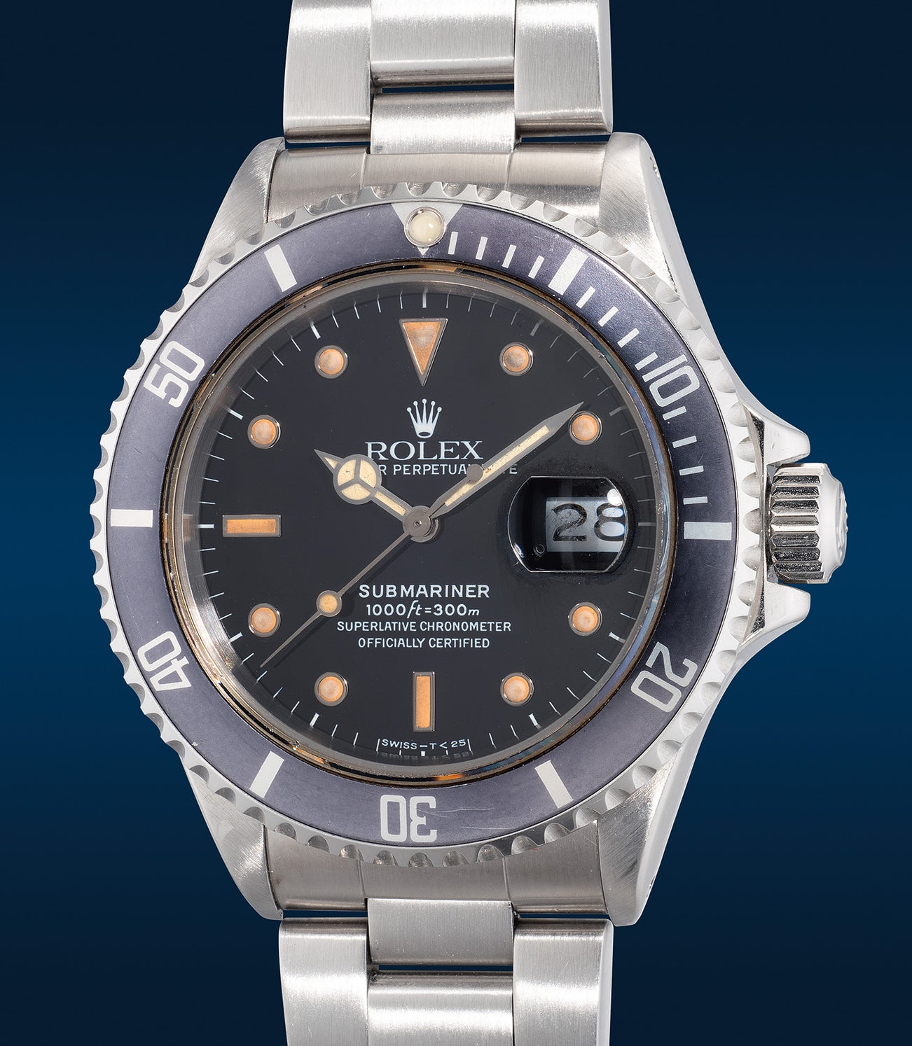 勞力士,「Submariner」型號168000,罕有重要,精鋼自動鏈帶腕錶,備中心秒針、日期顯示,約1988年製。