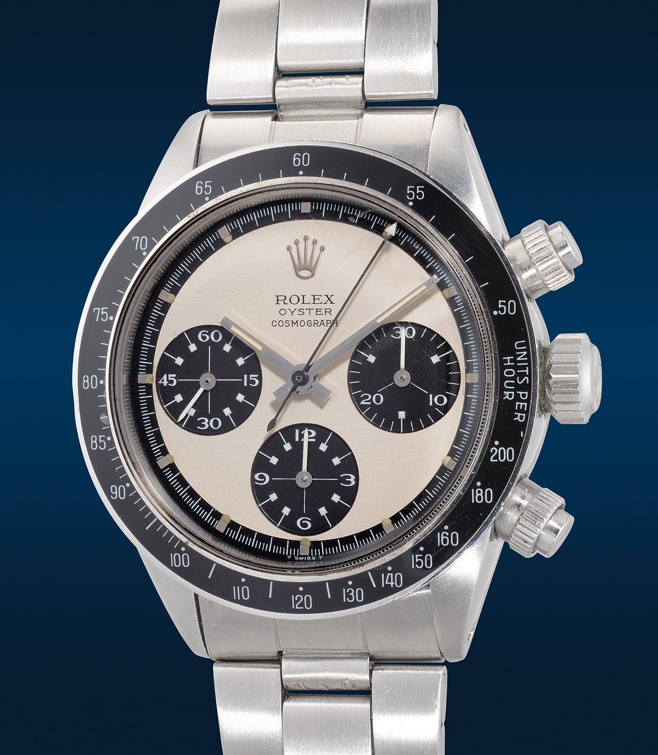 勞力士,「Cosmograph Daytona」型號6263,極度精細罕有,精鋼計時鏈帶腕錶,備「Paul Newman Panda MK 2」錶盤,約1972年製。附原裝證書 、錶盒