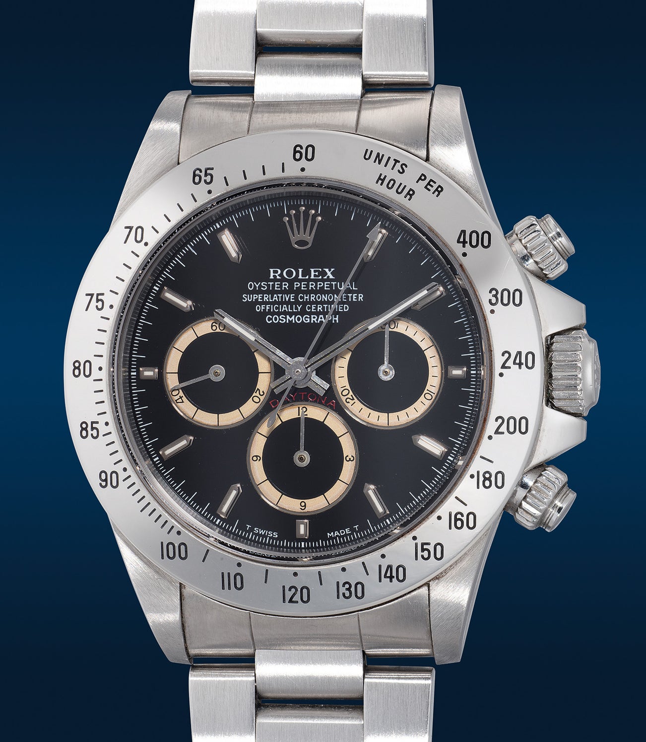 The Rolex reference 16520 with an "L" serial is a rare specimen from the early series of Zenith Daytonas. The first half of the "L" series is characterized by a 4-Liner dial and a bezel insert marked for 200 units per hour. However, in the later production of the "L" series, the watch features an updated 5-Liner dial and is fitted with a bezel insert marked for 400 units per hour.
