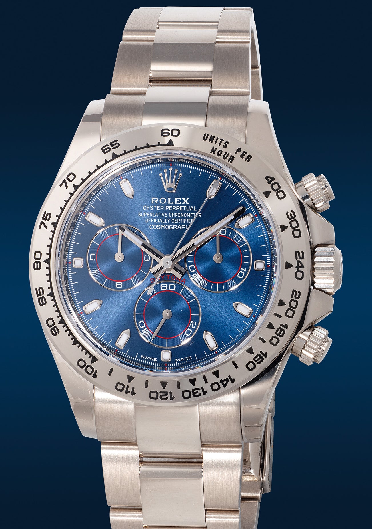 The stealth yet luxurious white gold case and blue dial combination is an iconic design that has always captured the hearts of watch enthusiasts, making it a highly sought-after model. Offered in “like-new” condition, the present Rolex Daytona reference 116509 with an attractive blue dial from circa 2020 is presented with its complete set of original accessories, and it is a great chance for collectors to acquire this coveted discontinued model.
