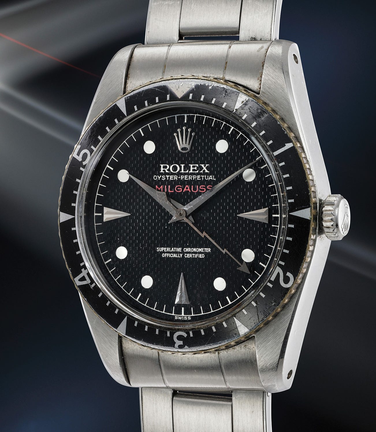 Most impressively, the Milgauss was guaranteed to resist magnetic fields up to 1,000 oersted. The name Milgauss is derived from the Latin word mille, which means 1,000, and gauss, the unit of a magnetic field. The Milgauss overcomes the effects of magnetic fields by using anti-magnetic alloys and an iron movement cover to create a Faraday cage.