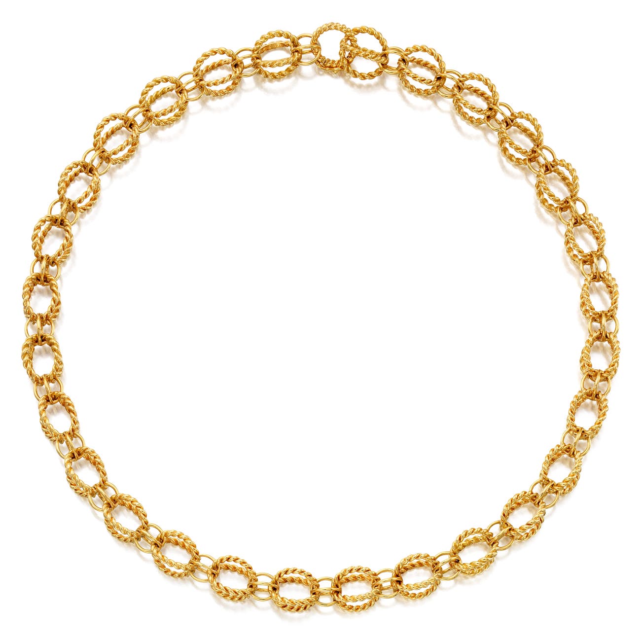 Composed of open work textured links, in 18k yellow gold, length approximately 18 1/2 inches, signed Tiffany & Co. Schlumberger Studio.
