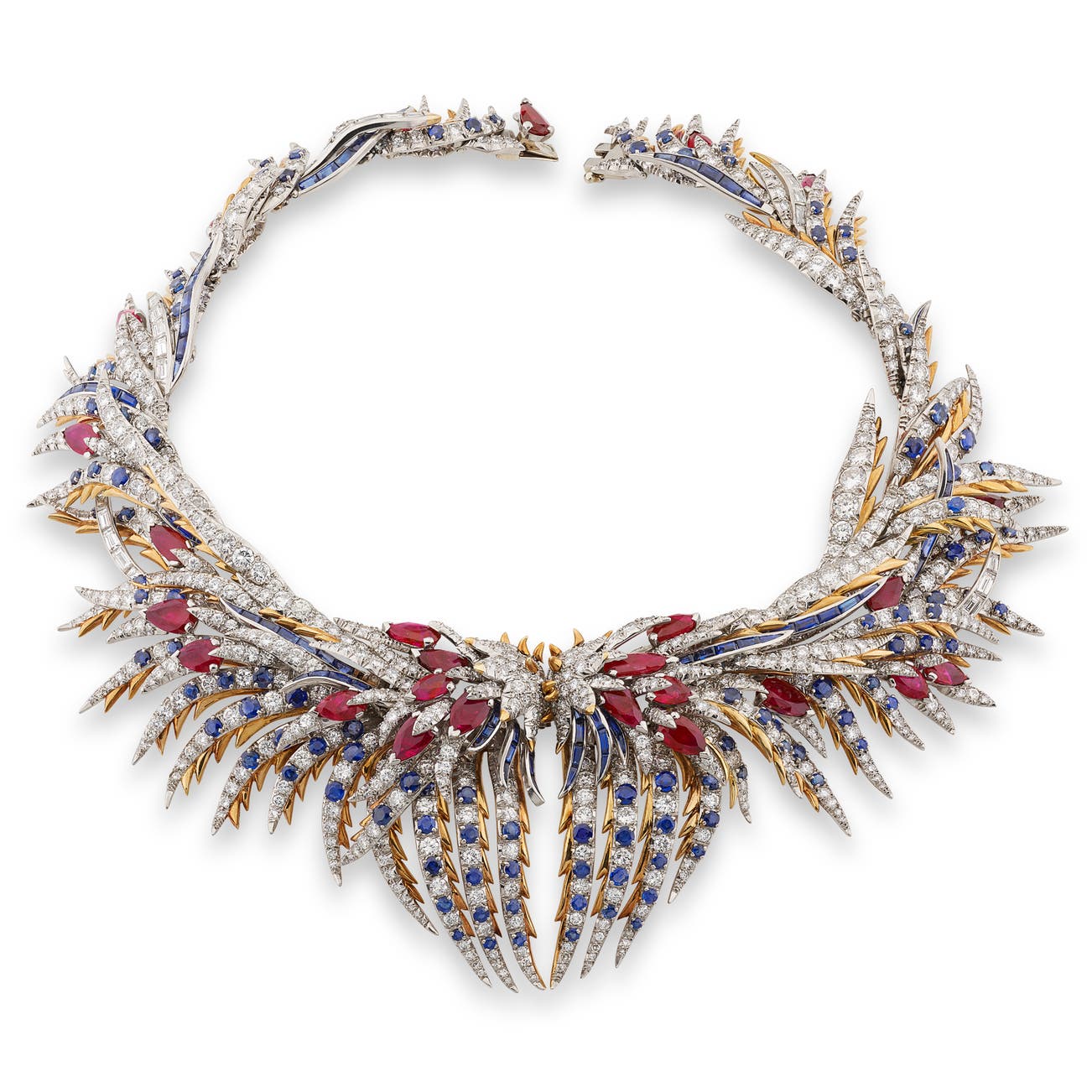 紅寶石、藍寶石配鑽石「Plumes」項鍊,Schlumberger,約1960年