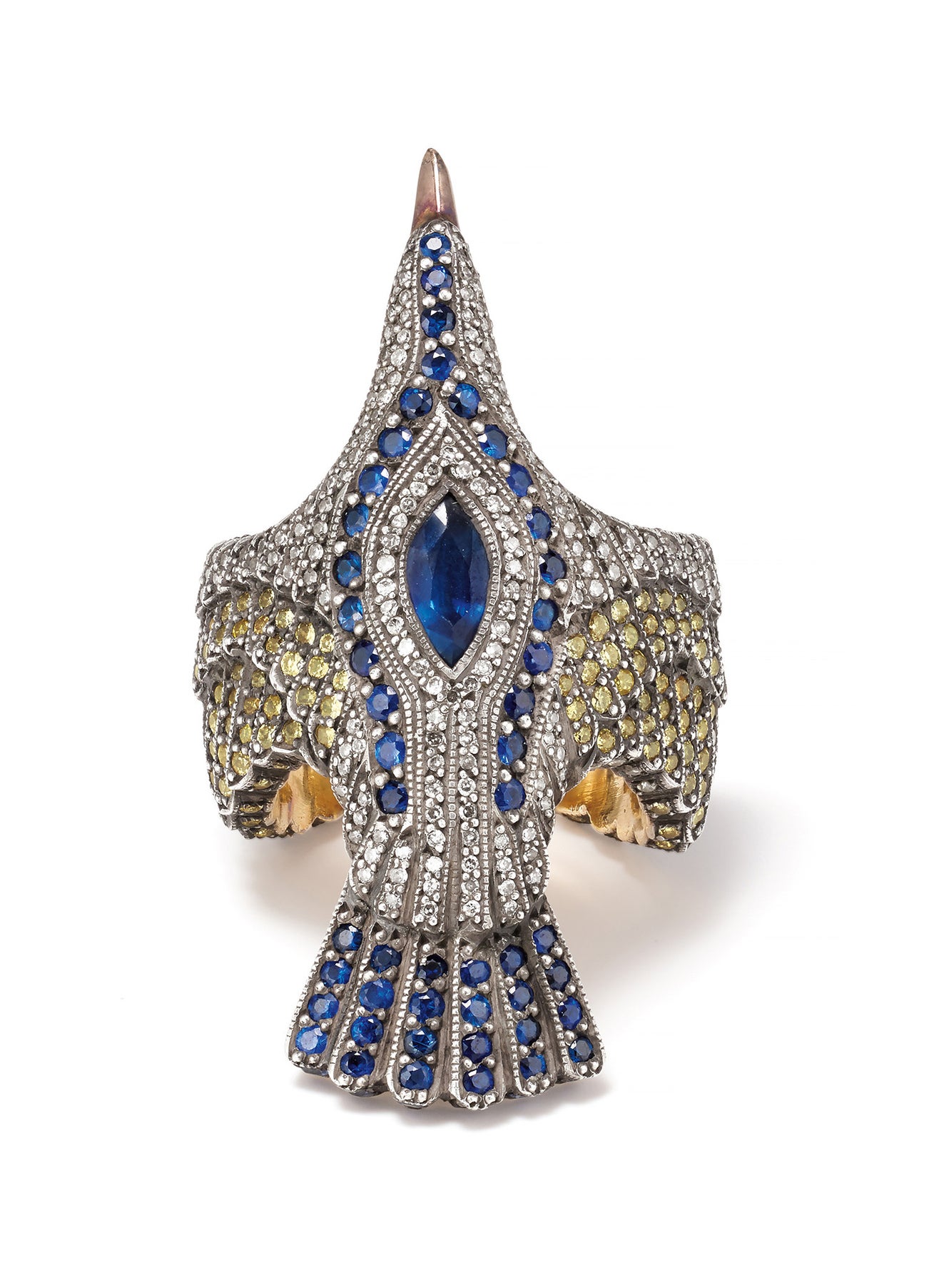 A Diamond, Sapphire, Gold and Silver ‘Seagull’ Ring