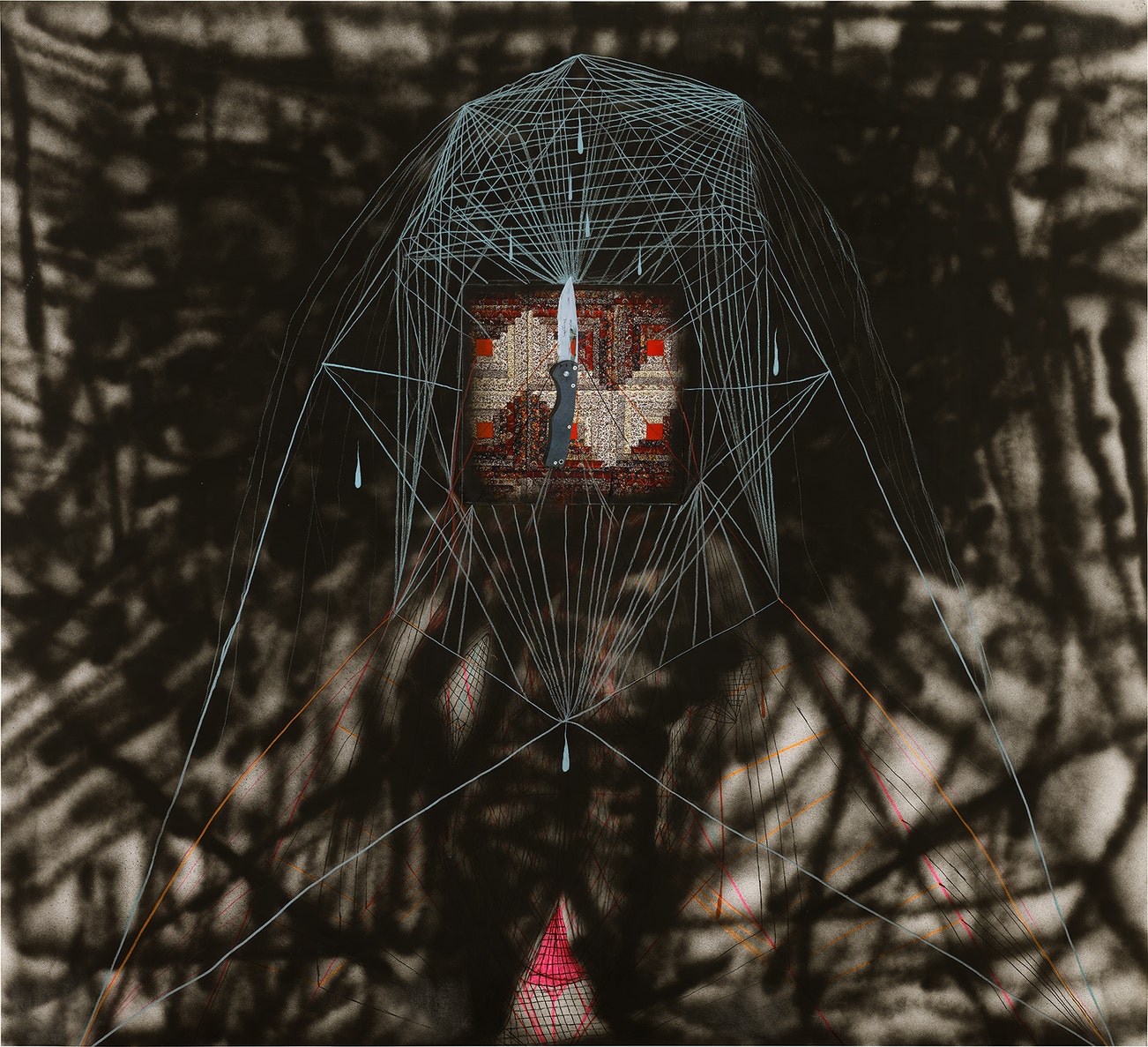 拼貼 噴漆 彩色鉛筆 紙本