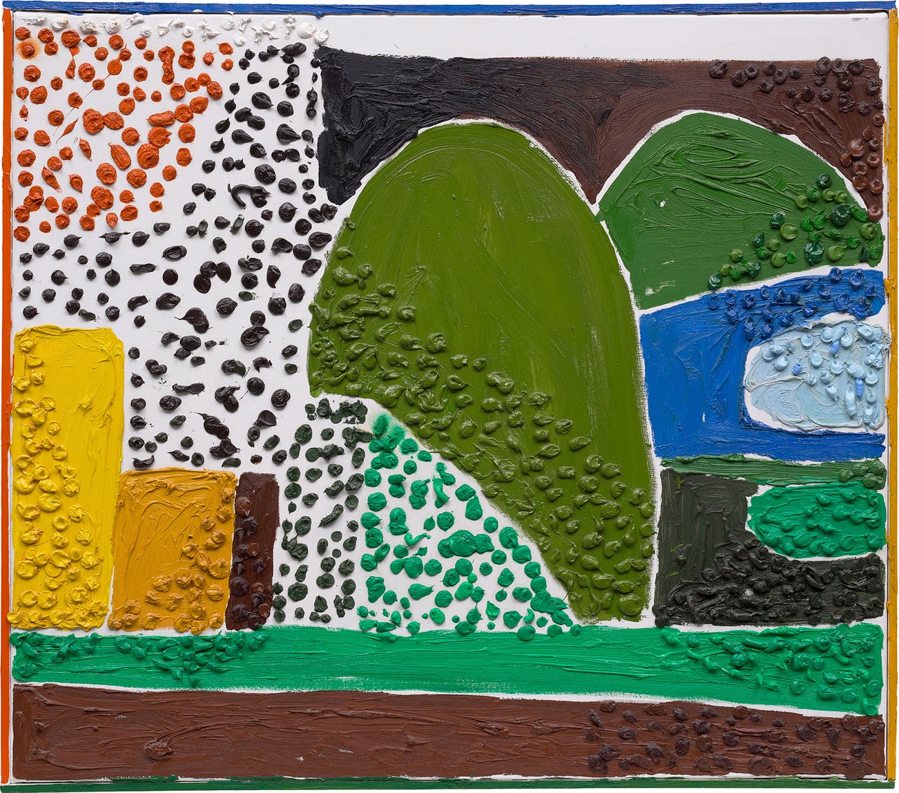 款識:TAL(畫布邊緣)"HILL OUT" Tal R 03(畫背)