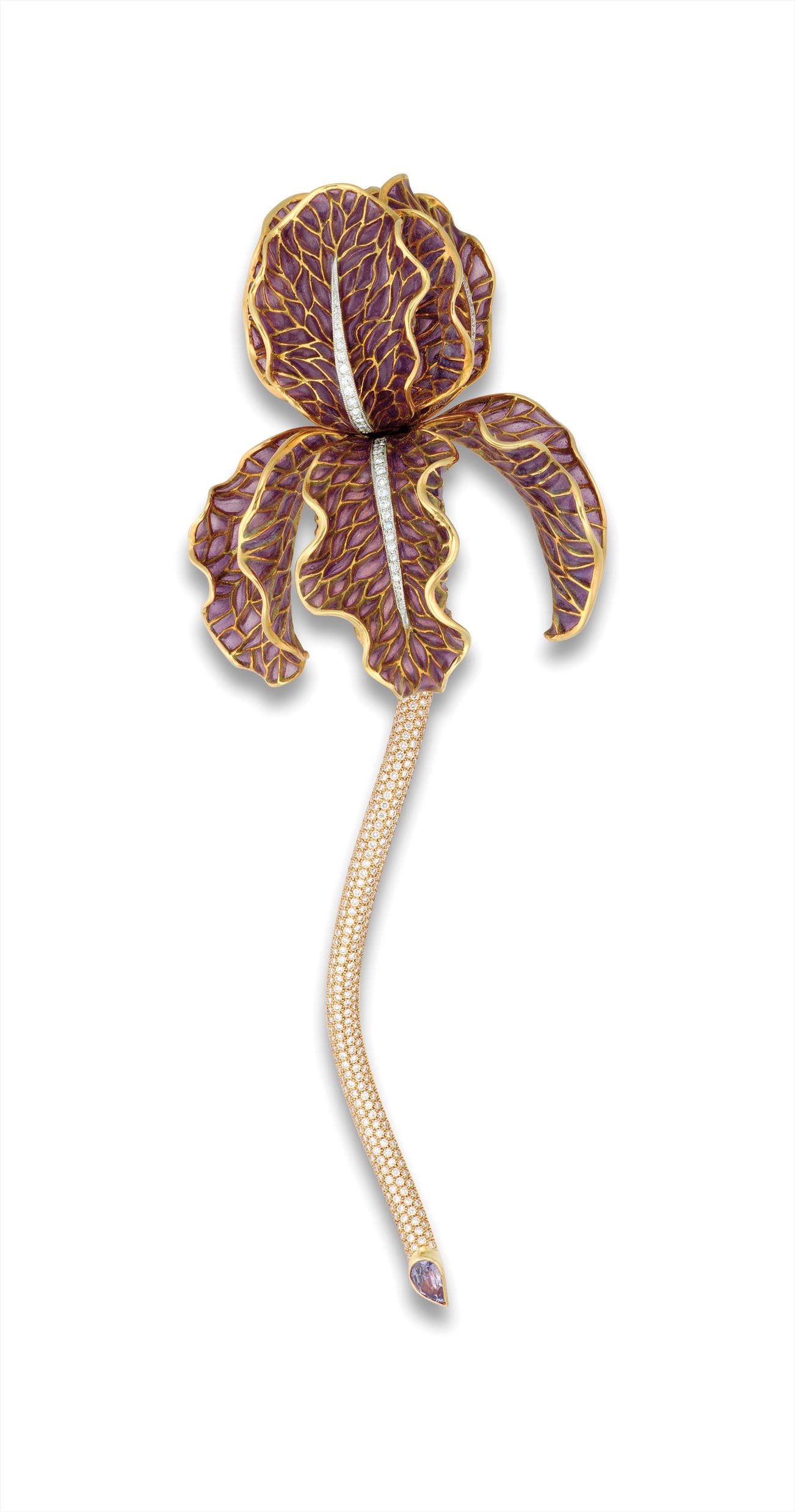 鏤花搪瓷配鑽石「鳶尾花」別針,蒂芙尼, 年份約2006