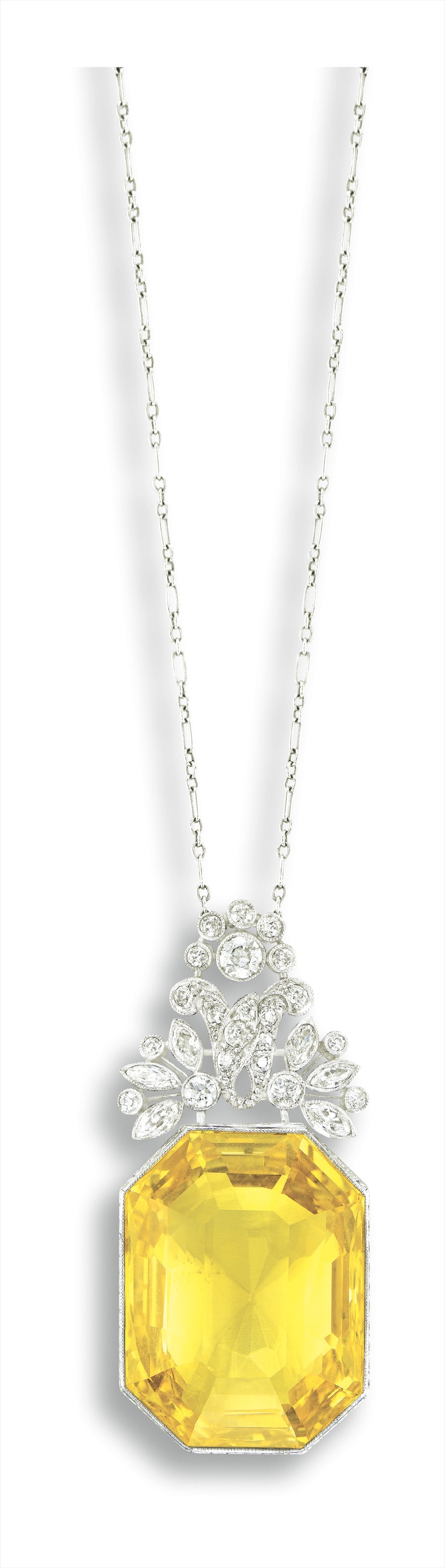 天然黃色剛玉配鑽石吊墜項鏈, 蒂芙尼, 約1910年, 黃色剛玉約重40.00克拉, 未經加熱處理