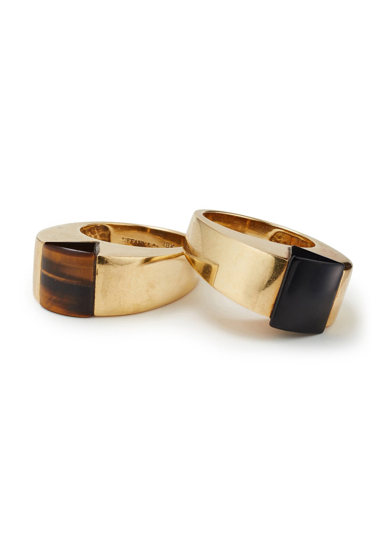 A Companion Pair of Tiger’s Eye and Onyx Gold Rings