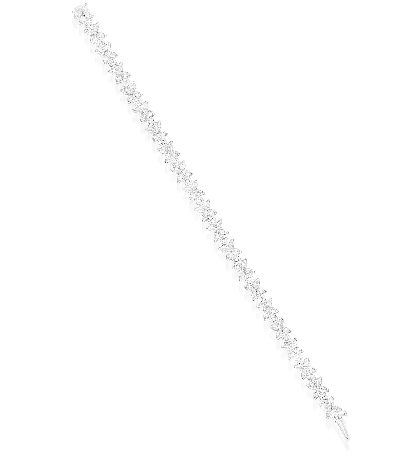 Designed as a line of marquise-shaped diamond clusters, spaced by graduated brilliant-cut diamonds, mounted in platinum, length approximately 160 mm, signed Tiffany & Co.