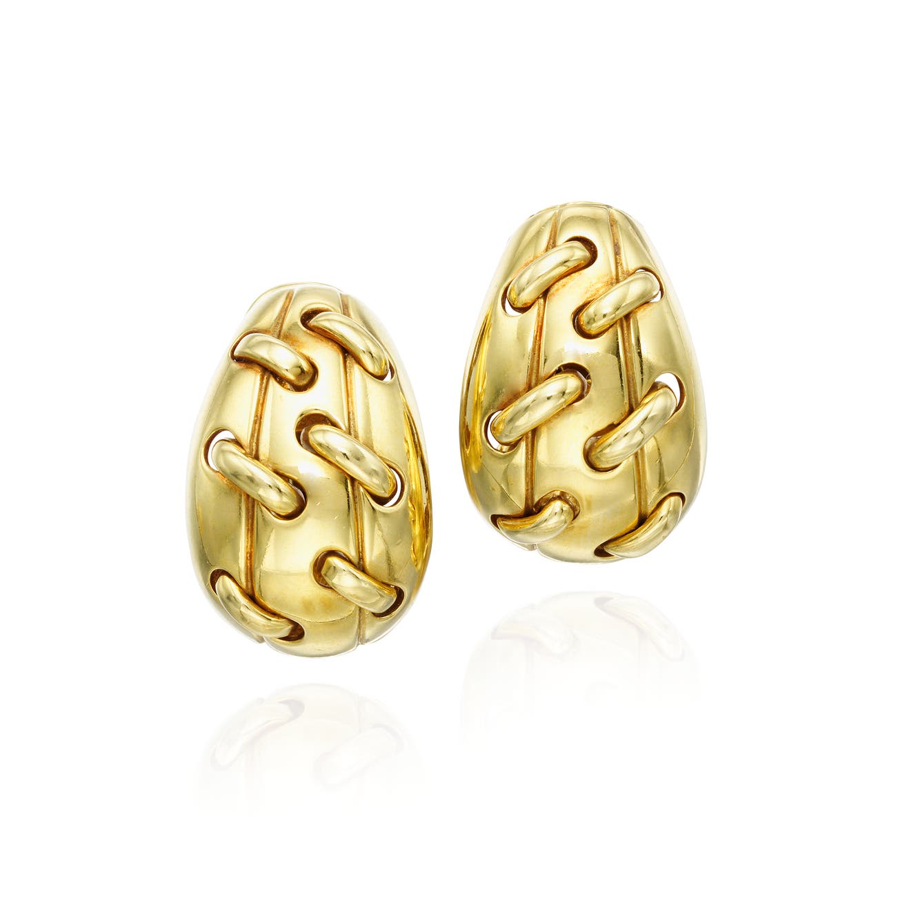 Of stitch design, made of 18k yellow gold, length approximately 7/8 inches, signed Tiffany & Co., 1993.