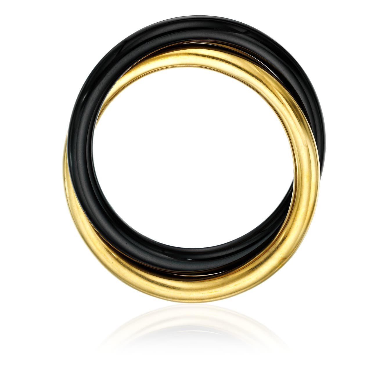 Of interlocking design, in black jade and 18k yellow gold, inner circumference approximately 7 1/2 inches, signed Tiffany & Co.