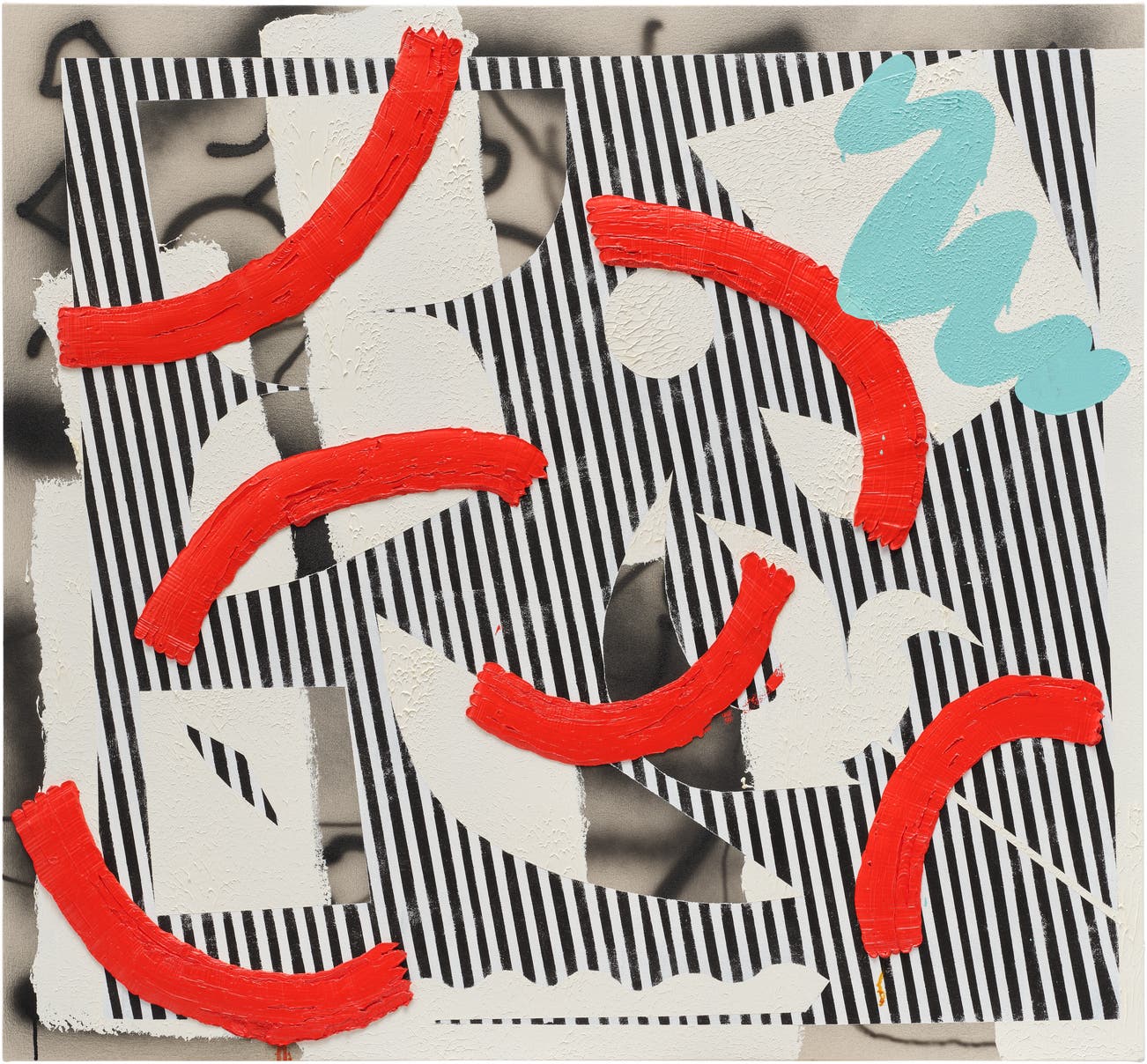 signed, titled and dated "Trudy Benson 2015 MOVEMENT IN STRIPES 2" on the reverse