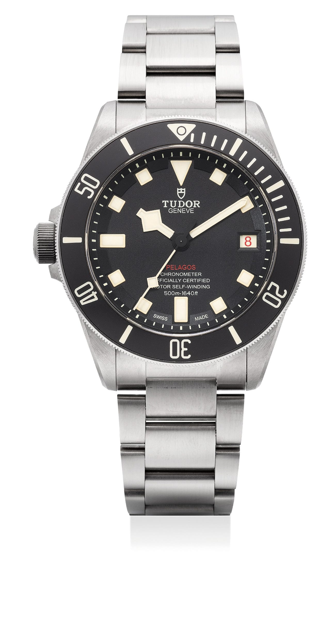 帝舵,「Pelagos LHD」型號25610TNL,左錶冠鈦金屬和精鋼自動上弦鏈帶腕錶,配中心秒針和日期,約2018年製。附錶盒和保證卡