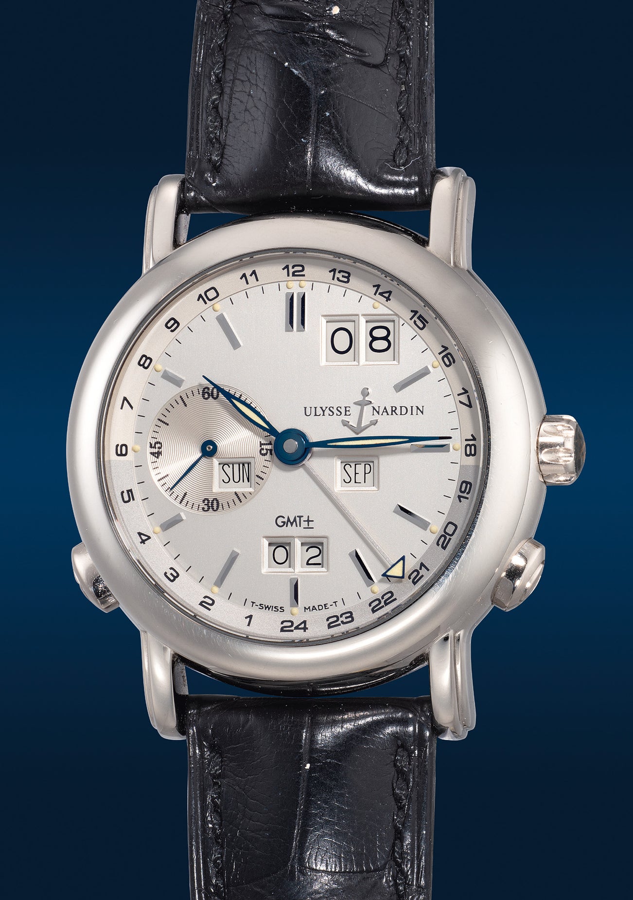 Founded in 1846, Ulysse Nardin created the present GMT +/- Perpetual Calendar to pay homage to its past. The movement is incredibly complicated, displaying the calendar with a digital year indicator above 6 o'clock. In addition, its dual time complication allows the user to adjust the time with olive shaped pushers that can be operated forward or backward. The date is also equipped with the quick-set function that is perfect for the traveller on the go.
