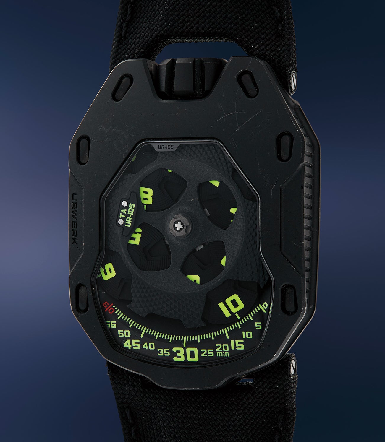 Urwerk,限量版PVD塗層鈦金腕錶,備獨特時分顯示盤,限量發行100枚,編號第25號。