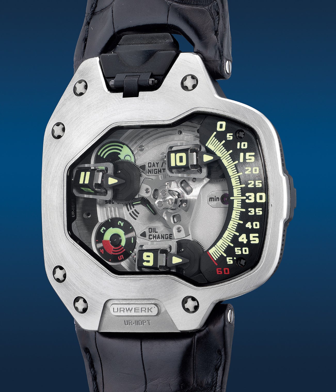 URWERK,「Torpedo」型號UR-110,十分罕有獨特,限量版鈦金自動腕錶,備鉑金錶圈、漫遊衛星讀時、日夜顯示、抹油指示器,限量發行20枚,約2013年製。附原裝證書、錶盒
