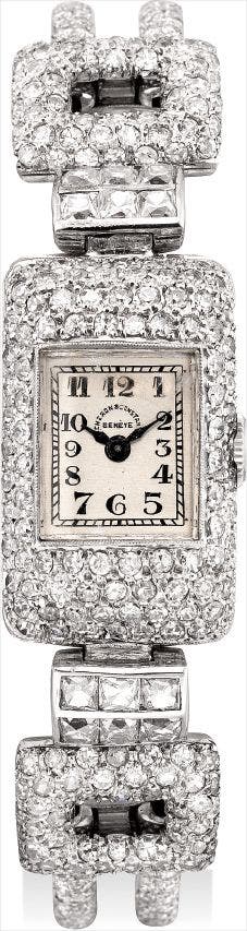 江詩丹頓,精細,鉑金鑲鑽石女裝鏈帶腕錶,由Chiappe銷售,1927年製