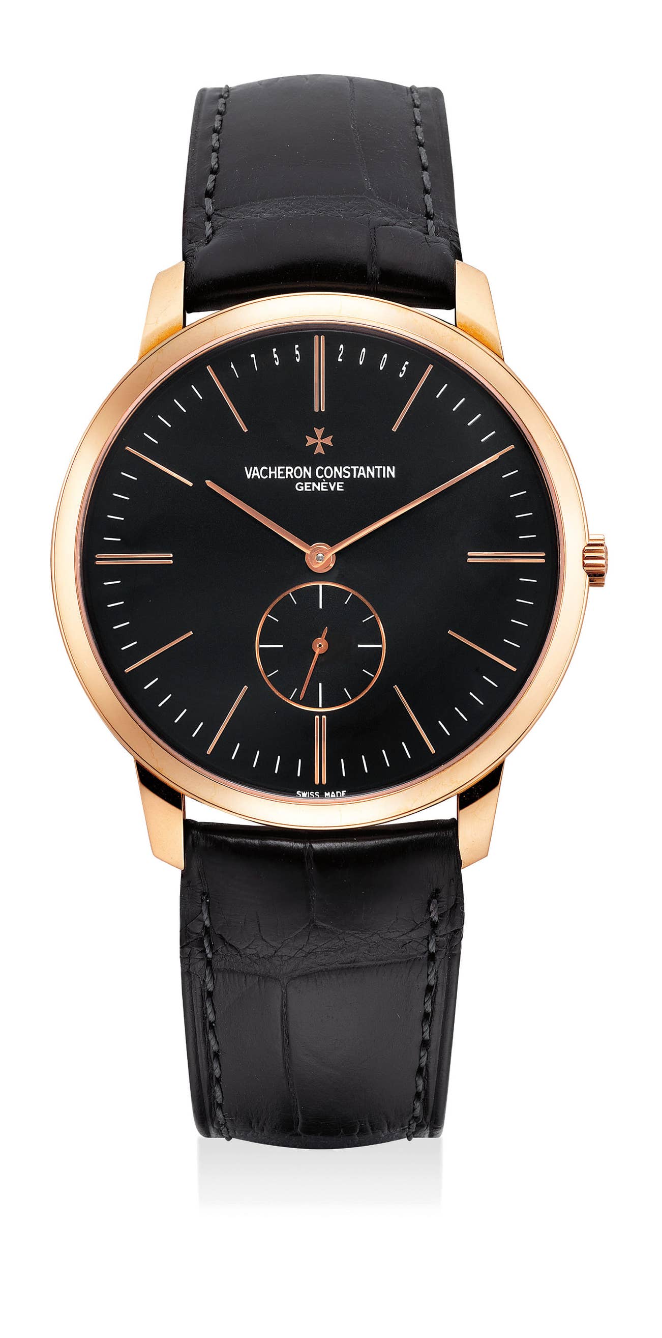 Its generous yet slim 40mm pink gold case, slightly bombé black dial and white minute track with the numbers 1755 and 2005 inscribed between 11 o'clock and 1 o'clock provide for a time piece of sotto voce flamboyance. The fact that this timepiece was made in celebration of one of horology's greatest milestones yet was never available for sale to the public makes it a rare treasure for the collection of a discerning Vacheronista.