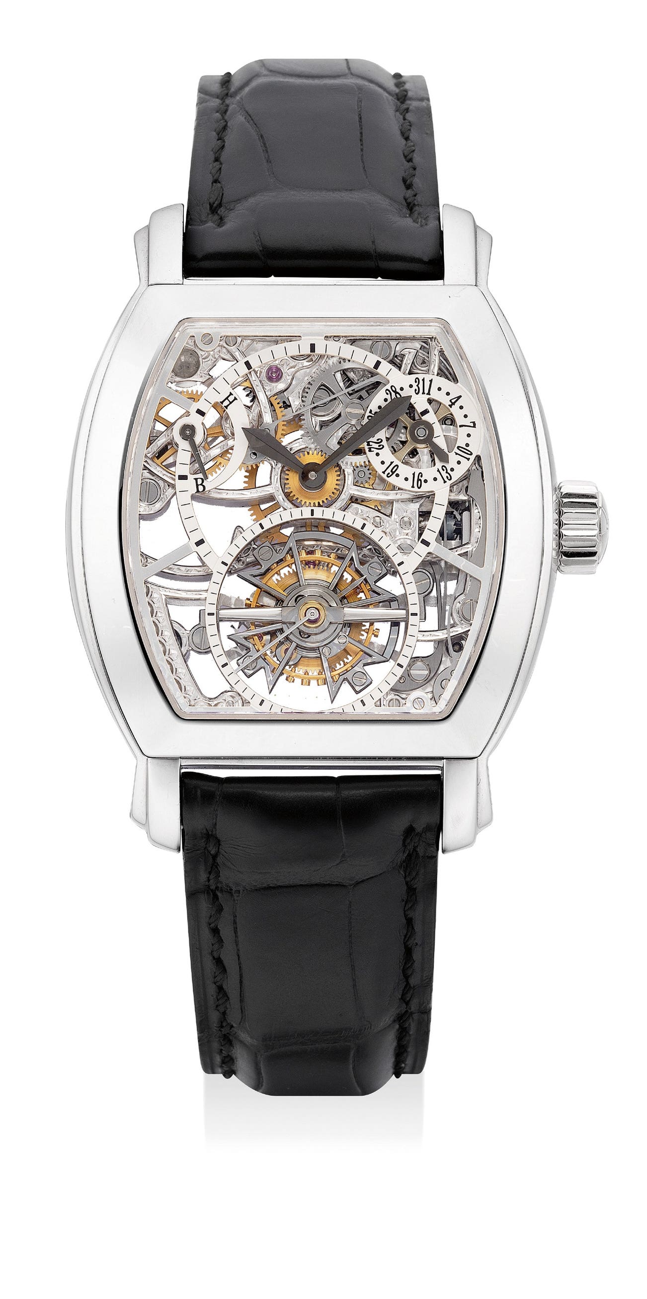 江詩丹頓,「Malte Openworked Tourbillon」型號30067/000P-8953,極度精細及罕有,鉑金鏤空陀飛輪腕錶,配動力儲存和日期顯示,2008年製。附原裝錶盒、原裝證書、調整筆、配件