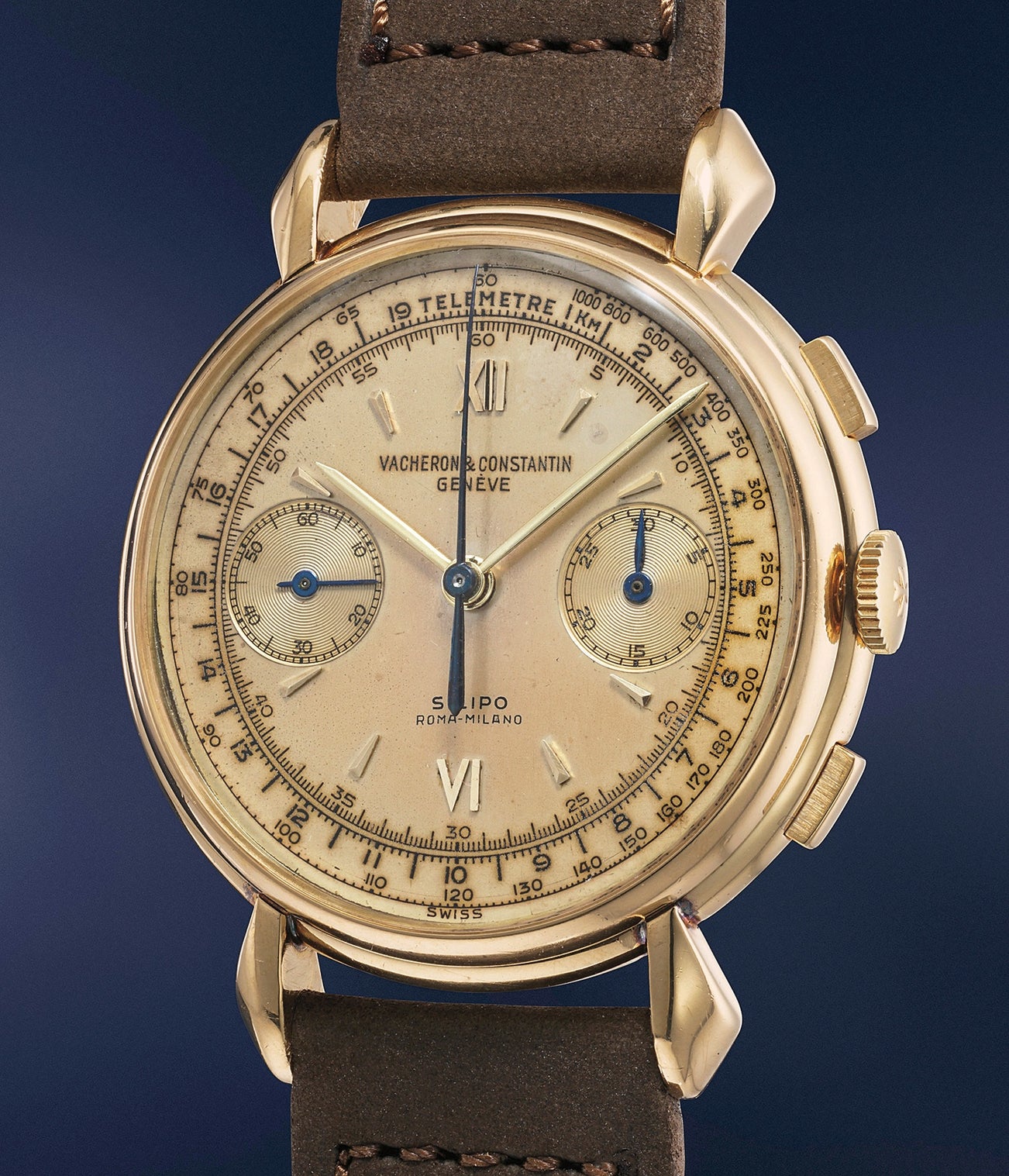 The present watch is an exceedingly rare species due to the dial, which displays the signature of Italian watch retailer Silipo. Founded in 1913, Silipo sells both jewelry and watches, and is still in business today. It was an honor and rare occurrence for a retailer to print their name on the dial, which underscores the rarity of the present timepiece.