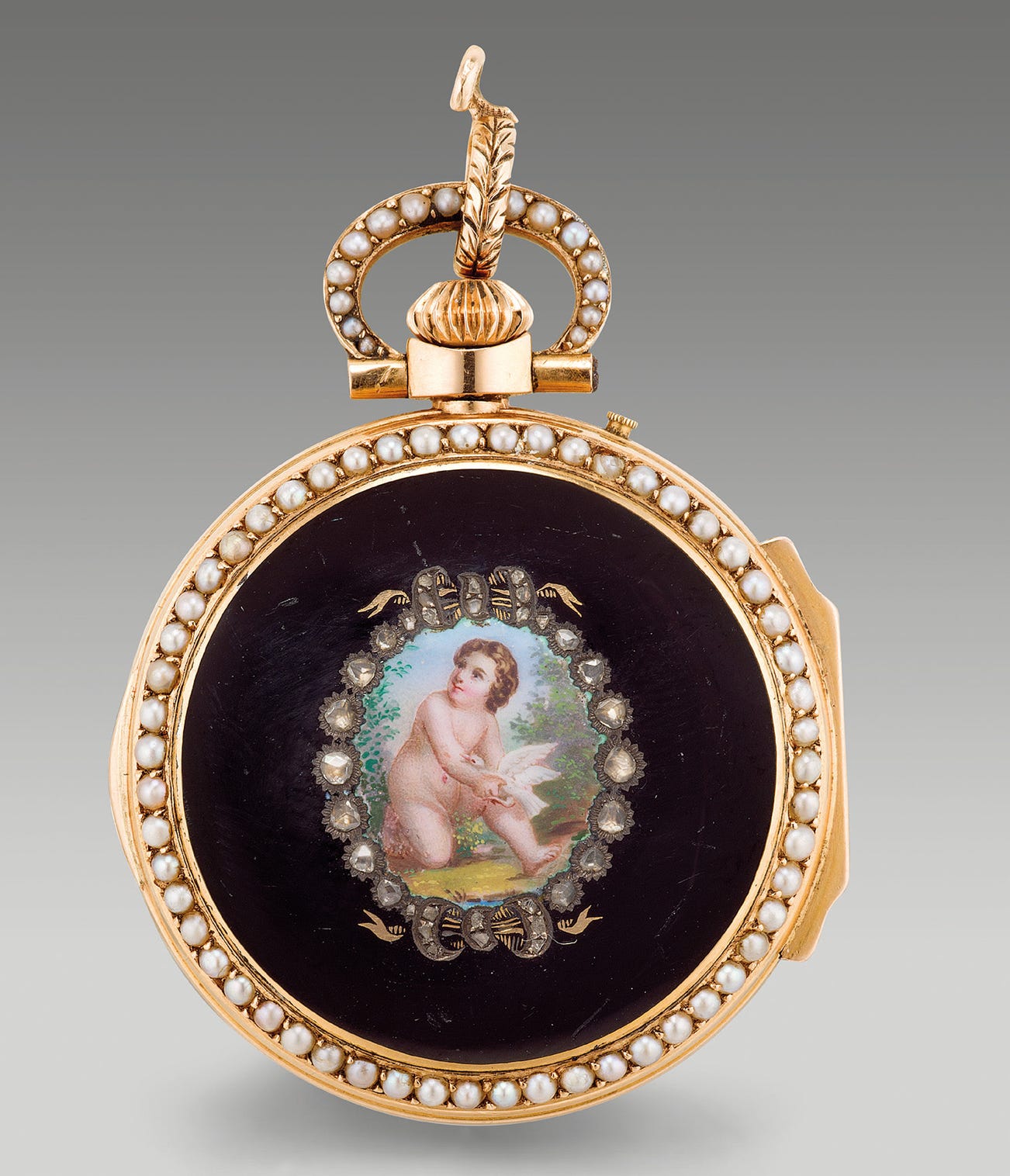 江詩丹頓,罕有,18K黃金珍珠琺瑯懷錶,1870年製。附後補證書