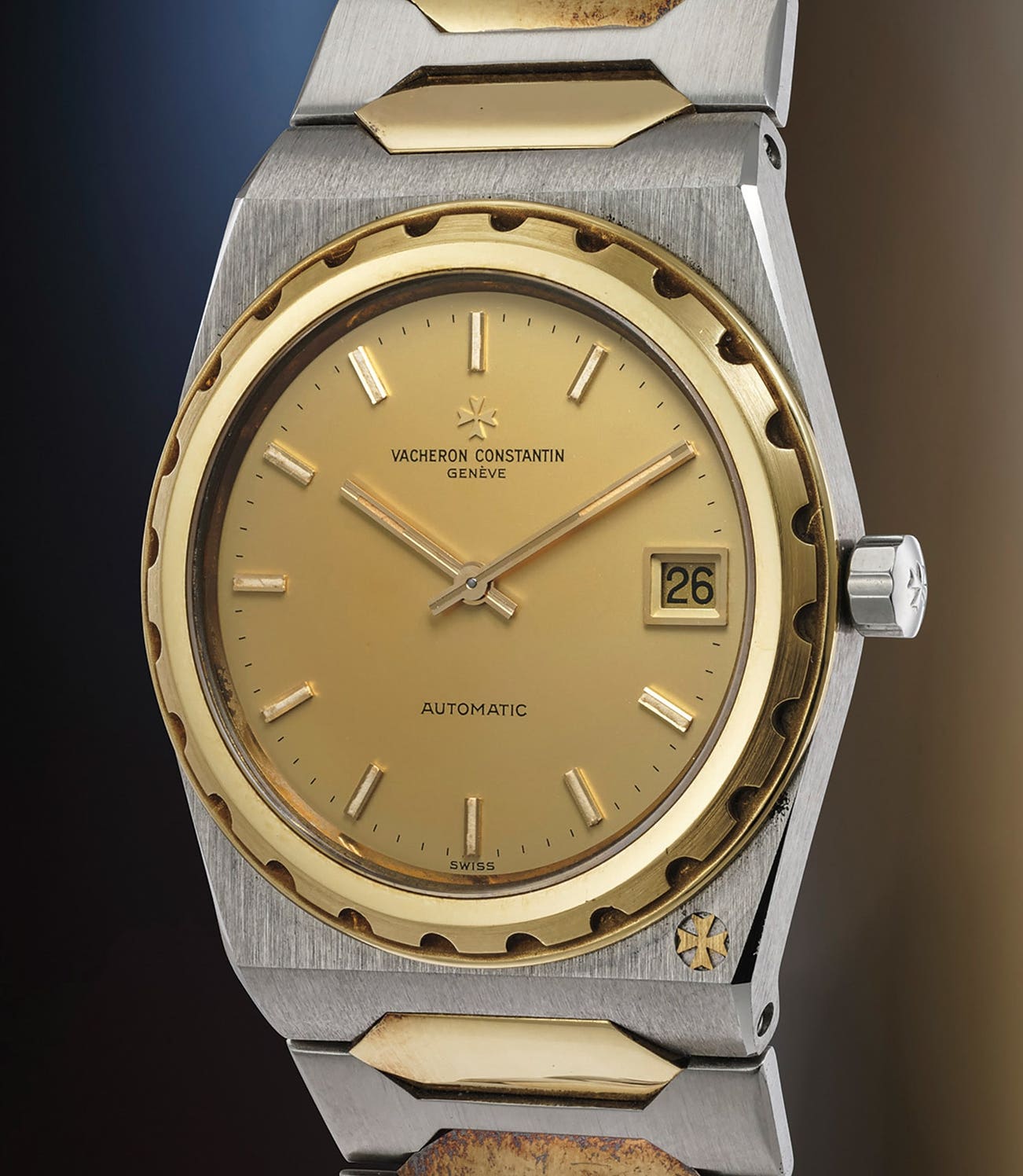 江詩丹頓,非常罕有精美,黃金及精鋼鏈帶腕錶,備日期顯示。