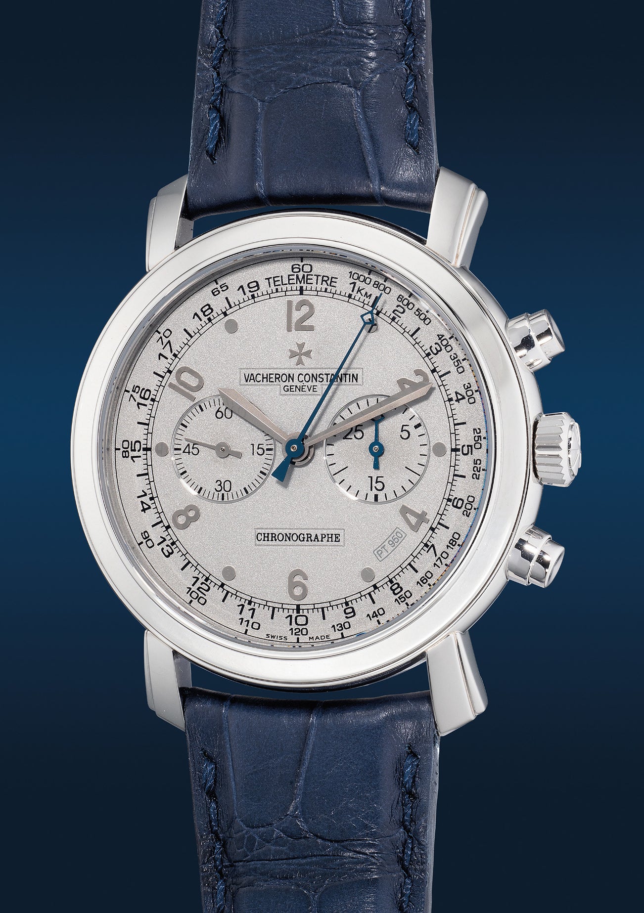 江詩丹頓,「Malte Chronograph Excellence Platine」型號47120/000P-9216,罕有,鉑金計時腕錶,限量發行75枚,編號20號,約2006年製。附原裝證 書、錶盒、配件