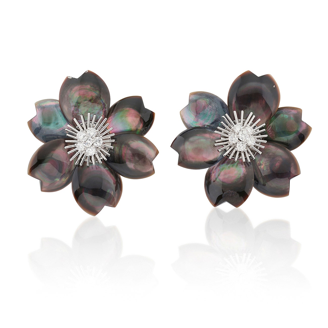 黑珠母貝配鑽石「Rose de Noël」耳夾一對,梵克雅寶