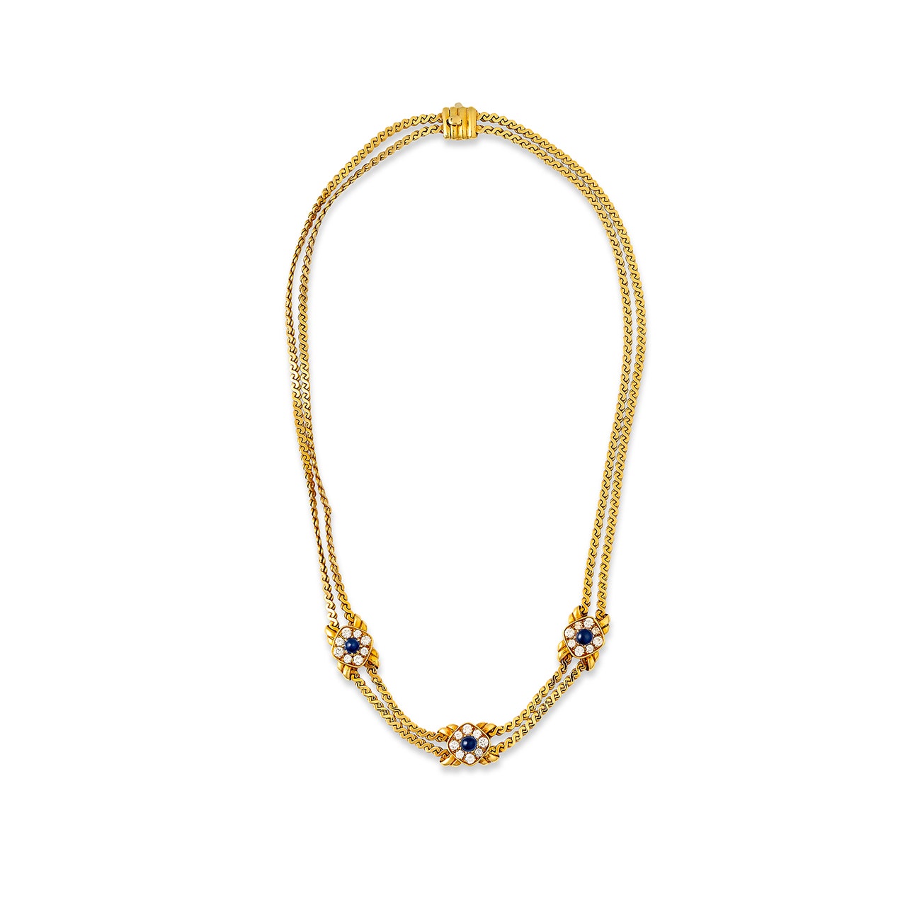 Gold, sapphire and diamond necklace