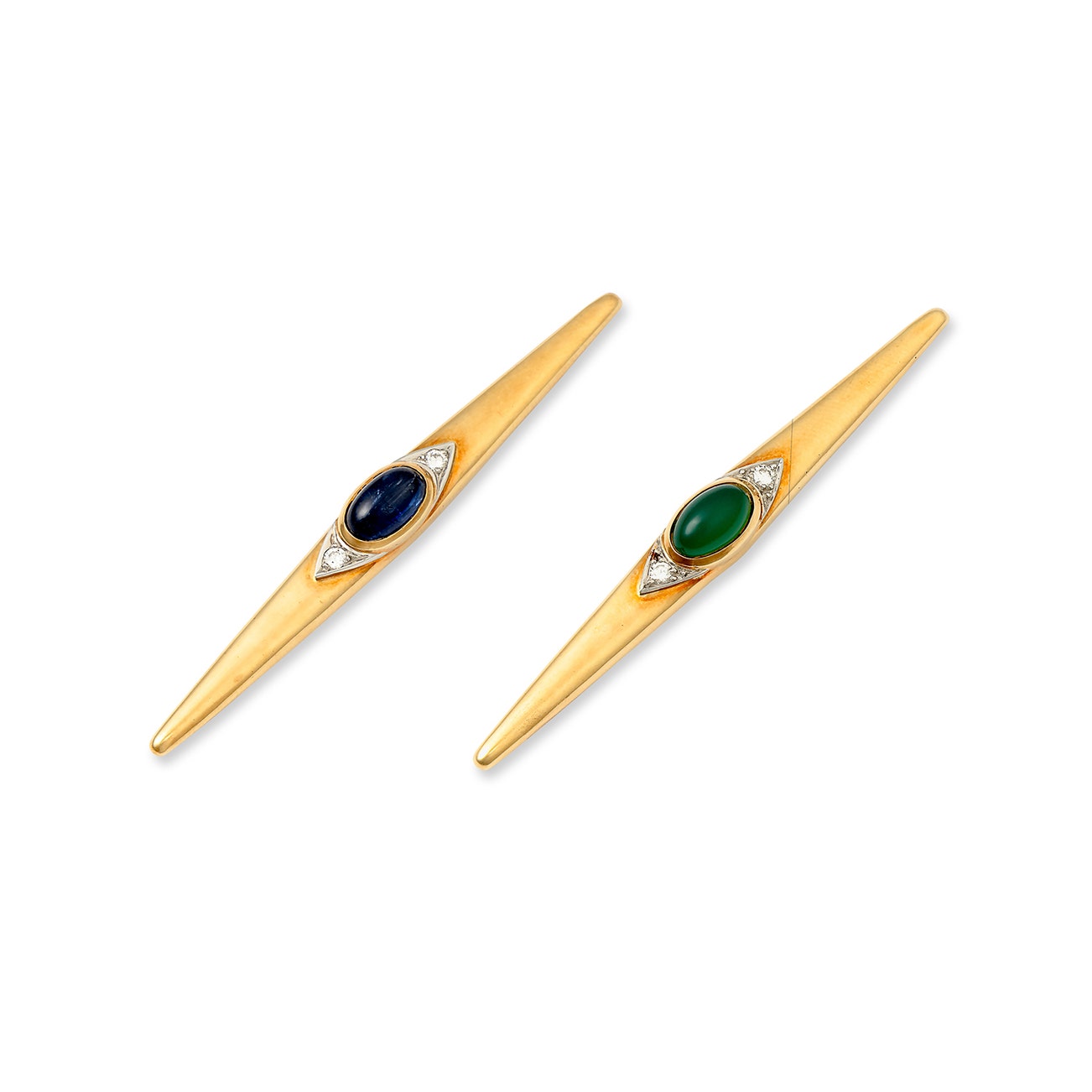 Emerald and diamond brooch and a sapphire and diamond brooch